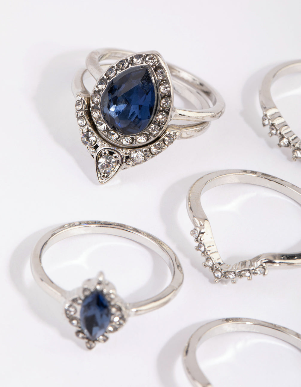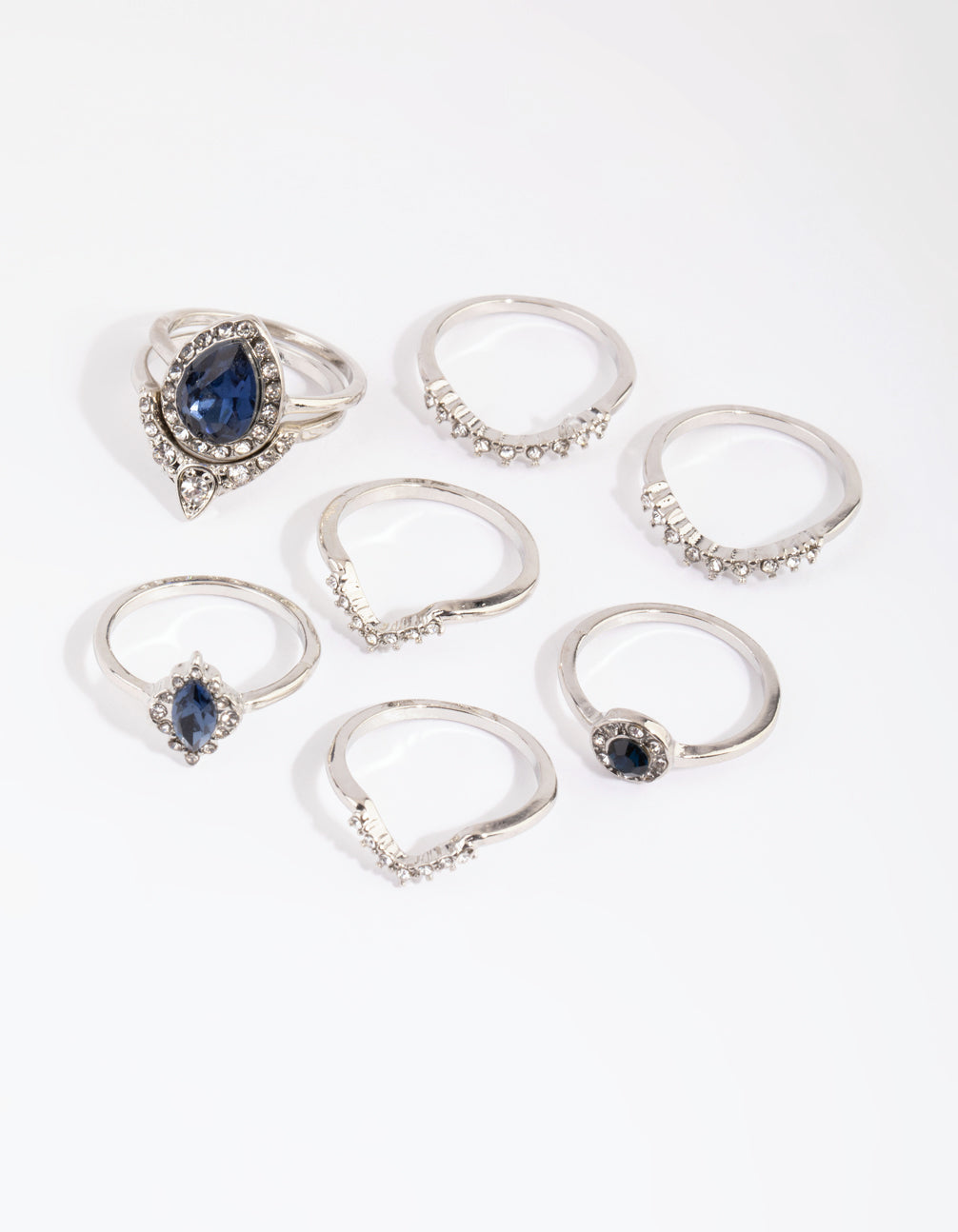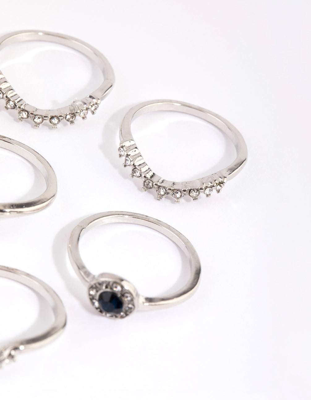 Rhodium Sapphire Mixed Ring 8-Pack