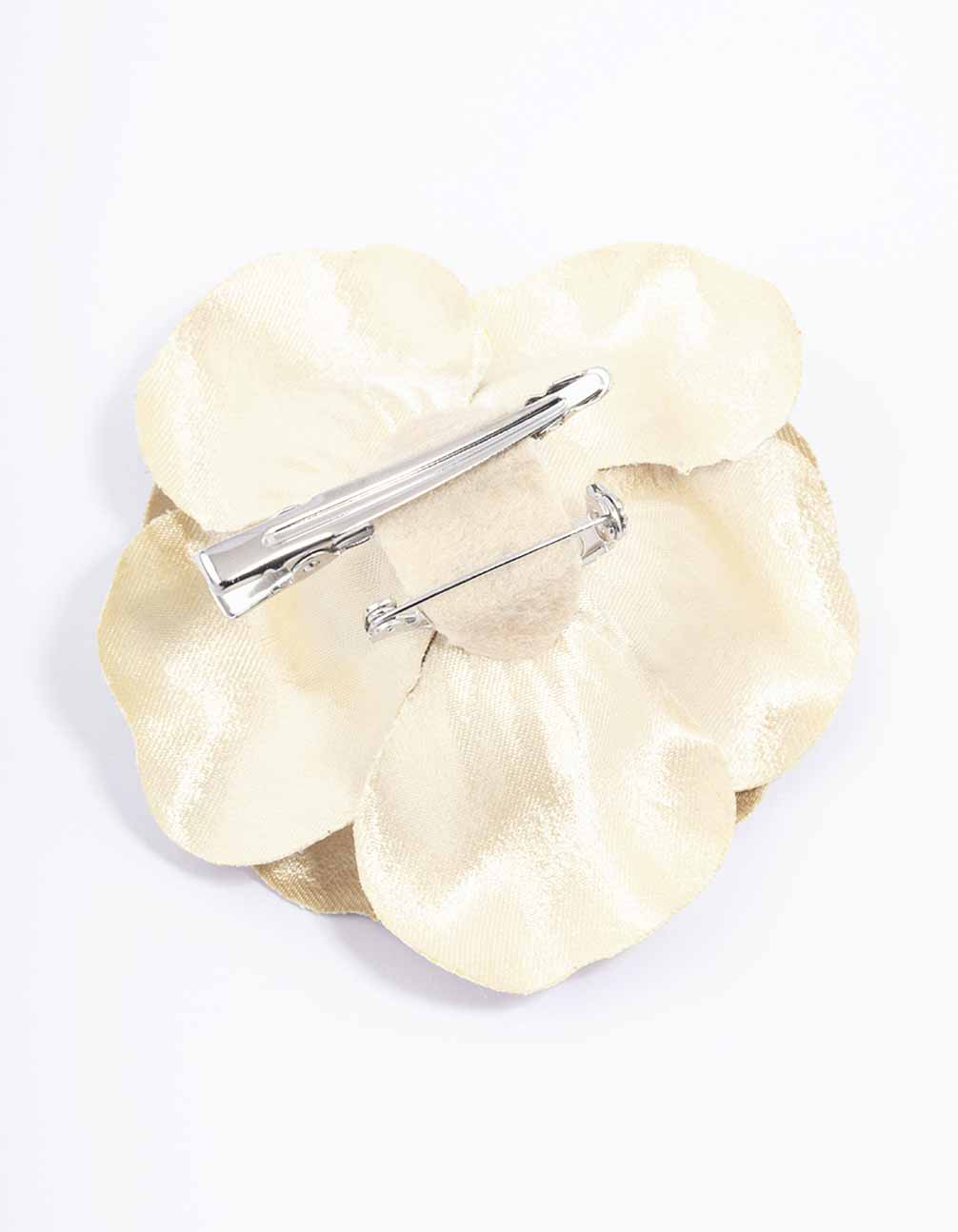 Silver Large Metallic Corsage Flower Hair Claw Clip
