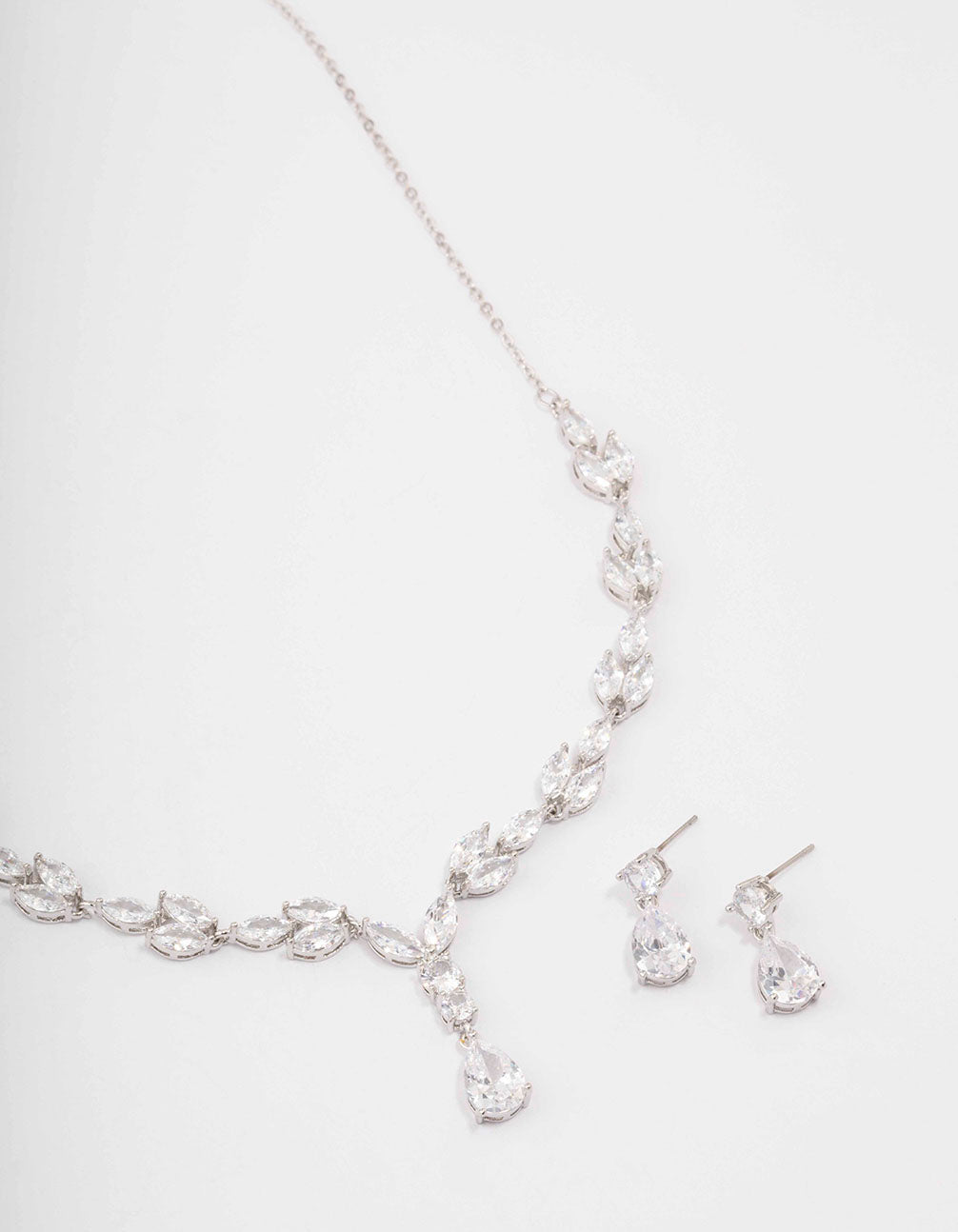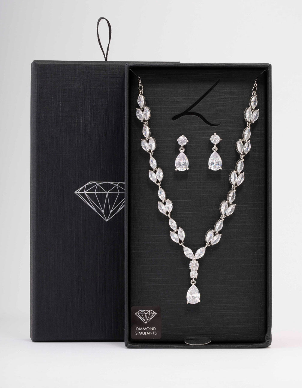 Turn heads with this Silver Marquise Pear Necklace & Drop Earring Set, the perfect pairing for your next special occasion. Featuring elegant marquise and pear-shaped designs, this jewellery set exudes timeless sophistication. The silver finish adds a sleek, polished look, while the drop earrings and matching necklace offer a graceful touch. Ideal for weddings, date nights, or formal events, this set pairs beautifully with everything from flowing dresses to tailored suits. Whether you're dressing up for a gala or looking to elevate your evening look, this necklace and earring set is your go-to for effortless glamour.
