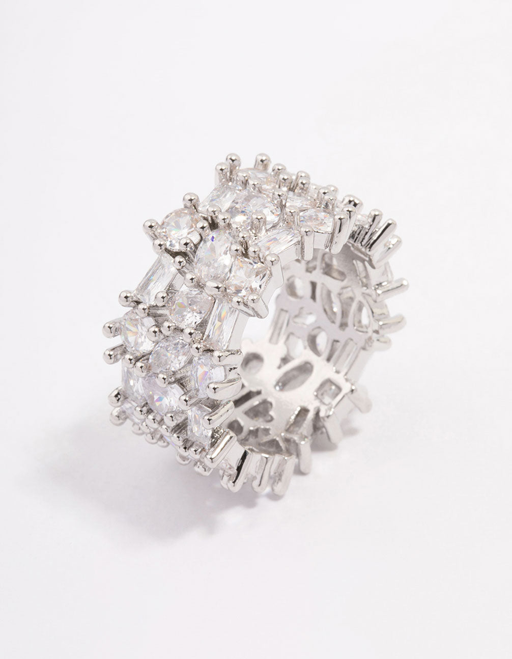 Silver Mixed Stone Cubic Zirconia Band Ring