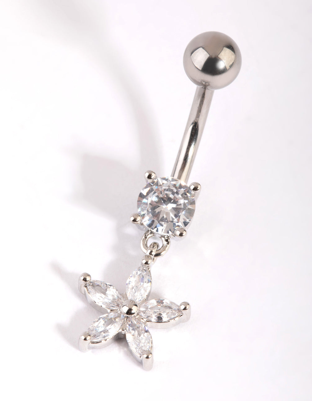 Surgical Steel Cubic Zirconia Flower Belly Bar