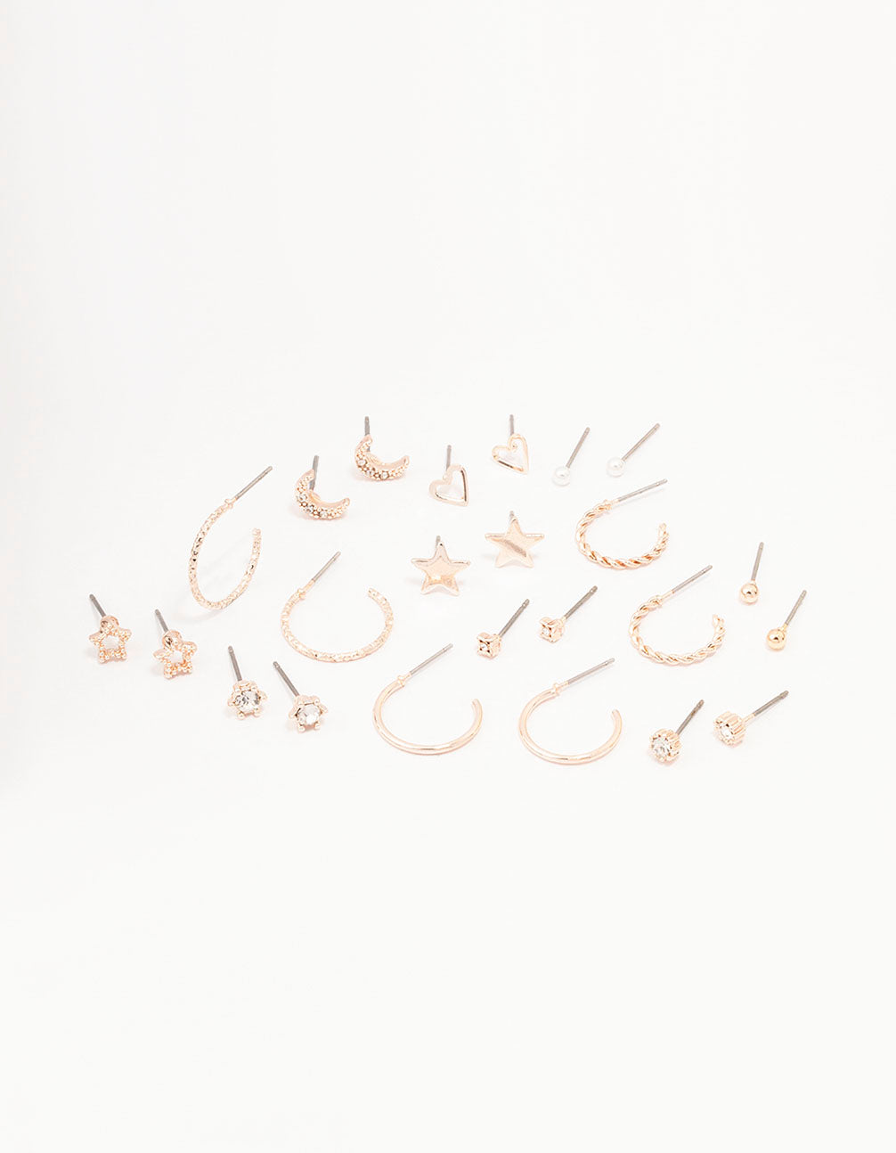 Rose Gold Celestial Heart Stud Earrings 12-Pack