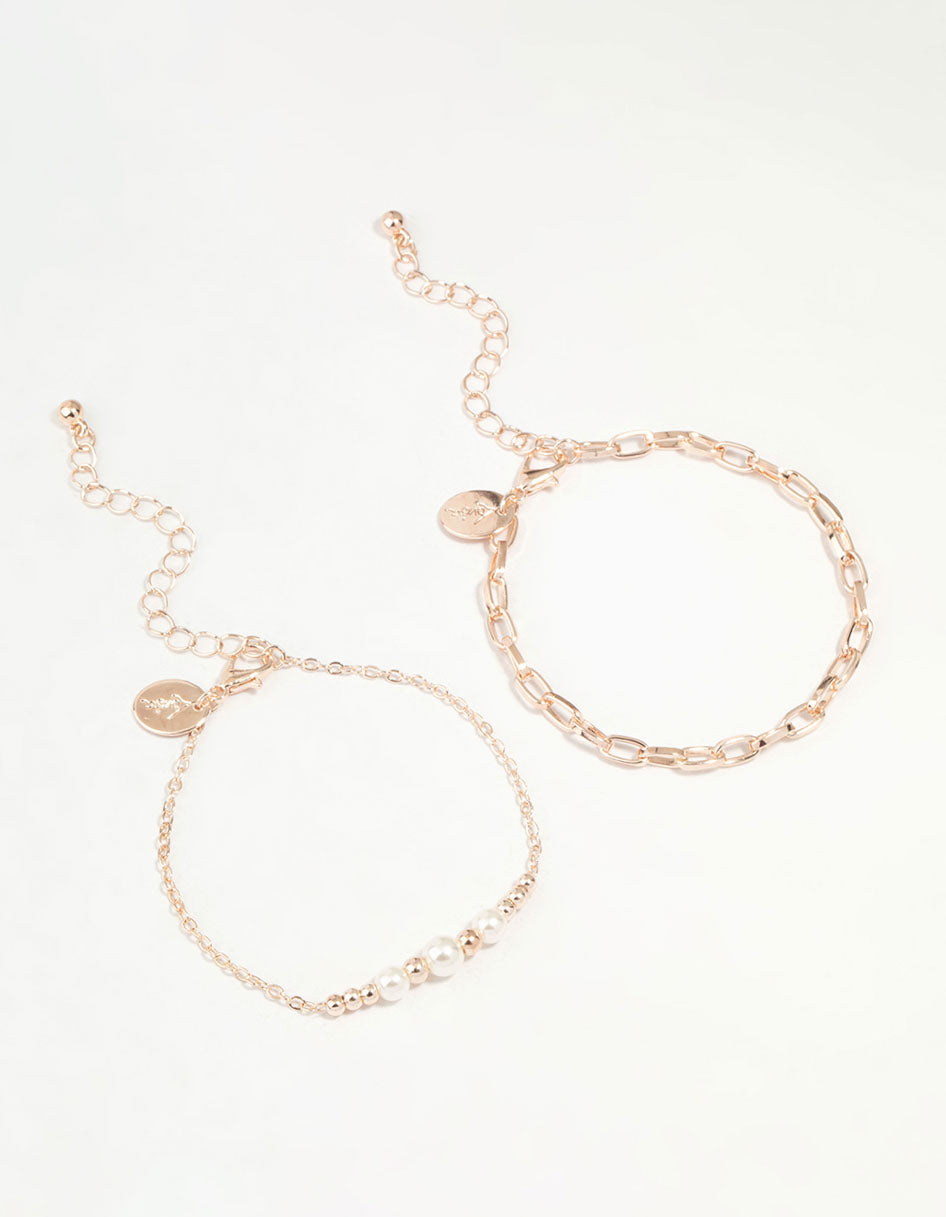 Rose Gold Chain Link & Pearl 2-Pack Bracelet