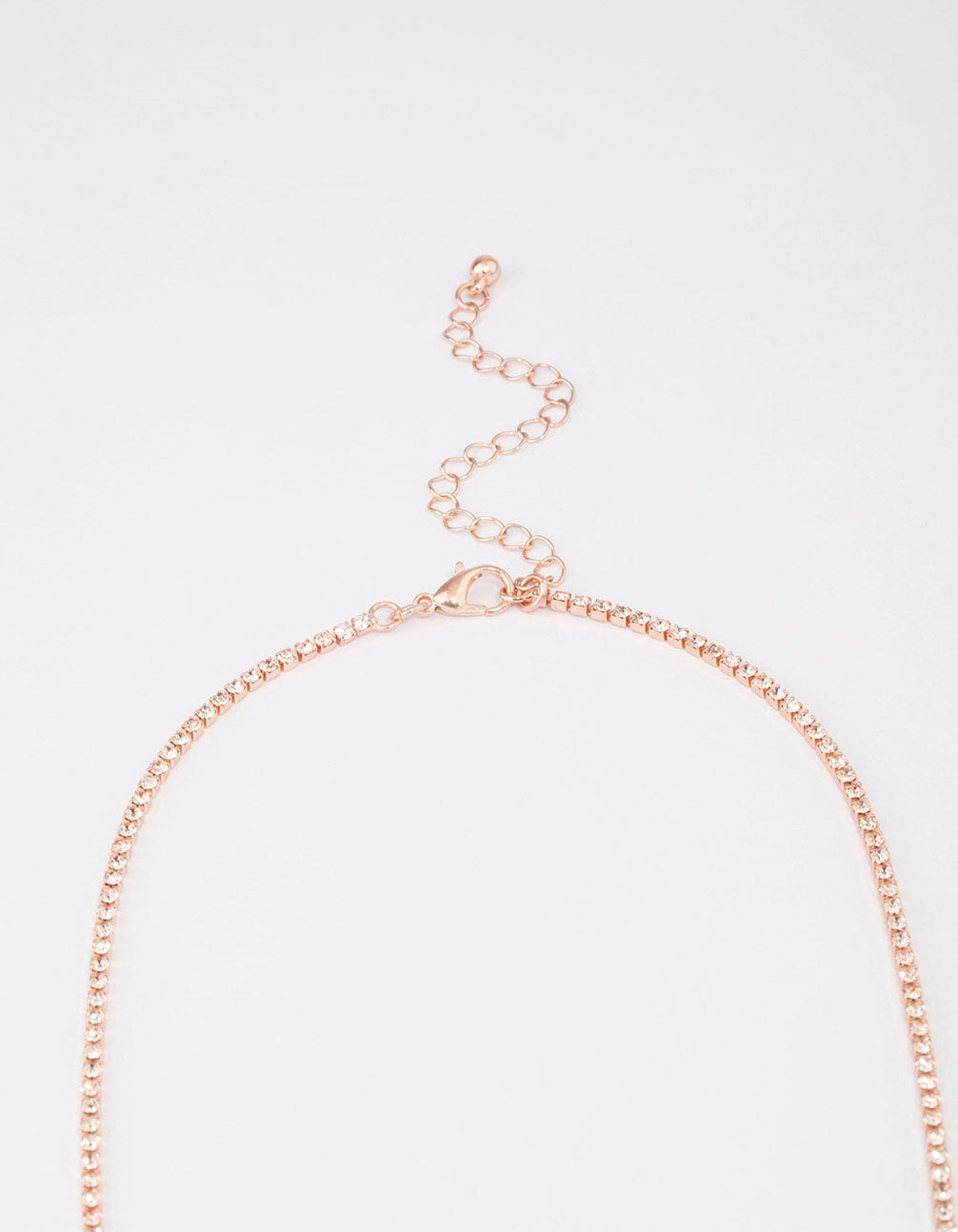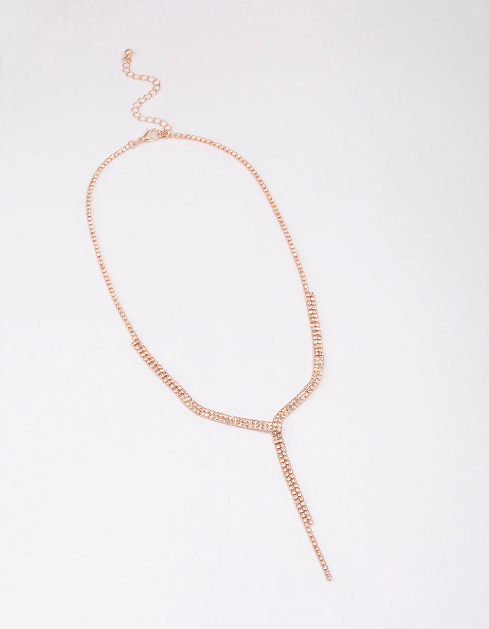 Complete your outfit with this gorgeous, lariat-inspired necklace. This dainty chain necklace features a warm, rose gold setting and diamante-encrusted design. Perfect for adding a hint of glamour to your look!