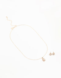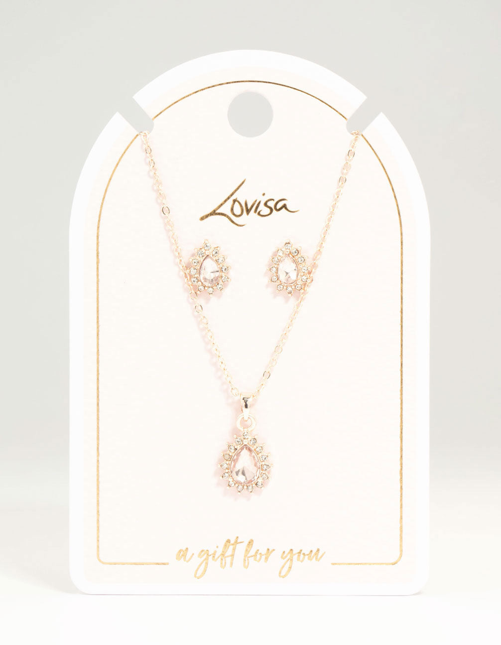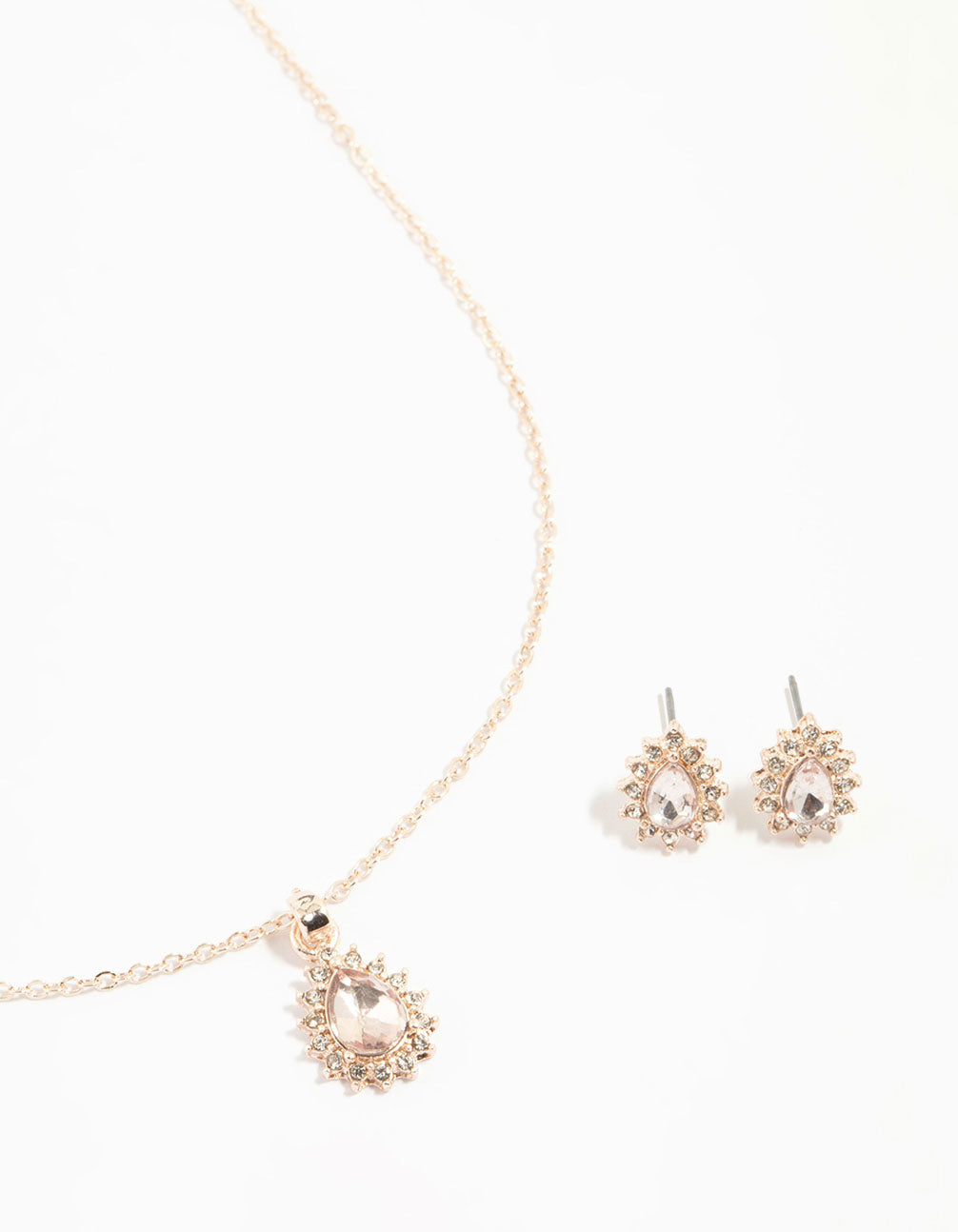 Rose Gold Diamante Teardrop Necklace & Earrings Set