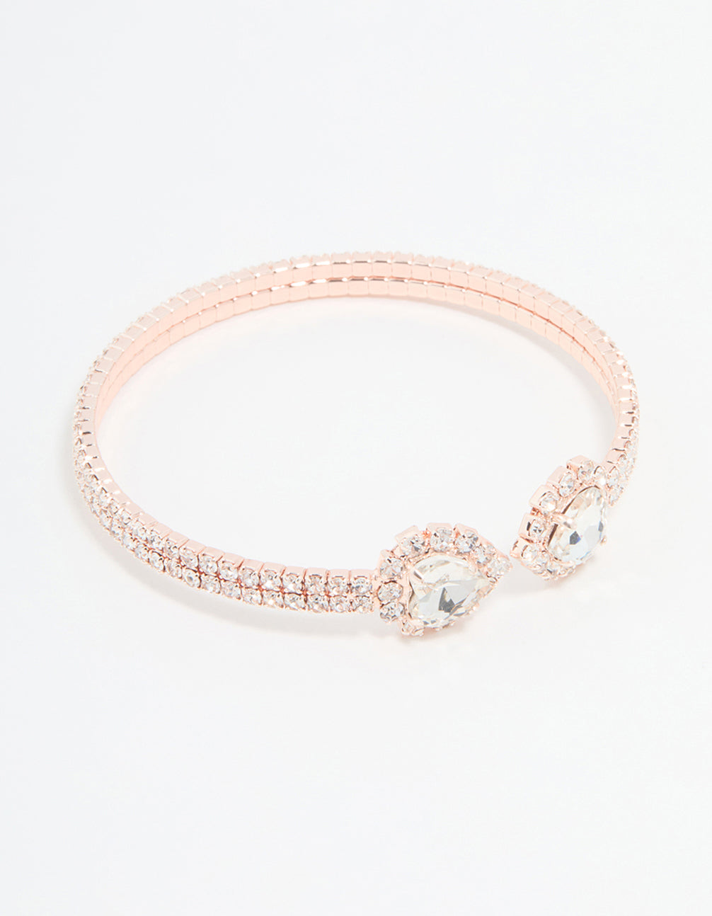 Add a little glamour to your everyday style with this Rose Gold Diamante Wrist Cuff. This stunning piece of wristwear is crafted in a sleek rose gold finish, making it the perfect bracelet to elevate any outfit. Accented with dazzling diamante details, it strikes the perfect balance between chic and eye-catching. Whether you're dressing up for a night out or adding a touch of sparkle to your casual look, this wrist cuff is a versatile must-have. Pair it with a flowy dress for a romantic vibe or stack it with other bracelets for a stylish layered effect. Ideal for any jewellery lover seeking a timeless yet youthful accessory!