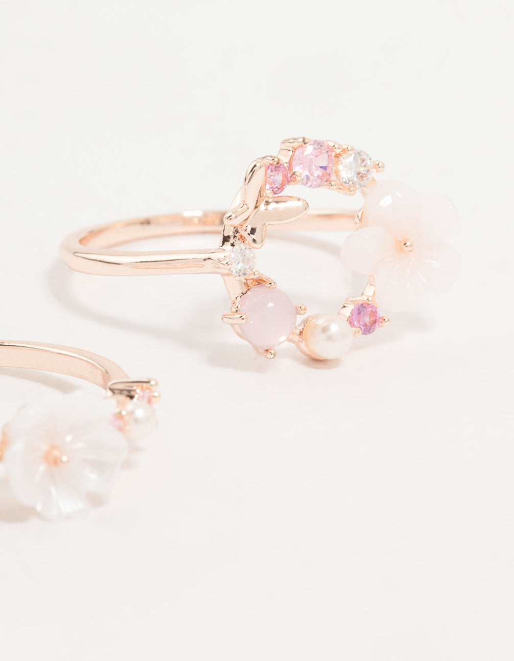 Rose Gold Flower & Circle Cubic Zirconia Rings 2-Pack