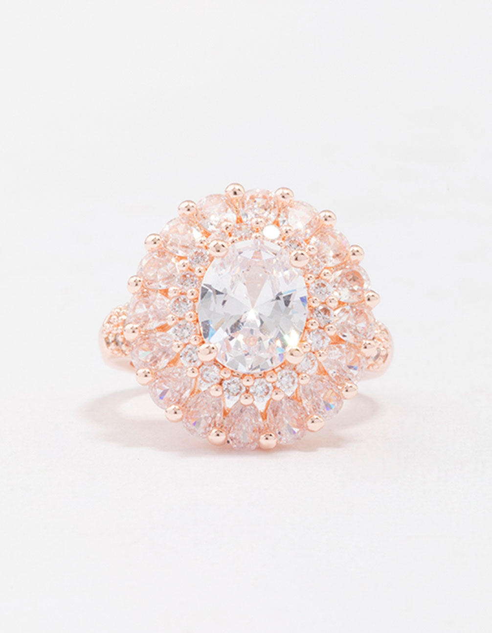 Rose Gold Glistening Cubic Zirconia Oval Cocktail Ring