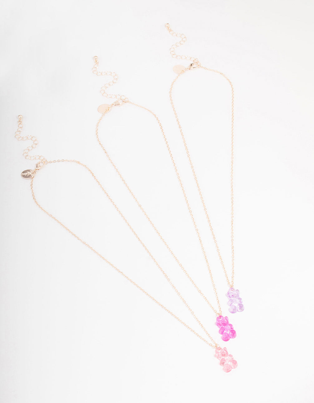 Rose Gold Gummy Bear Pendant Necklace 3-Pack