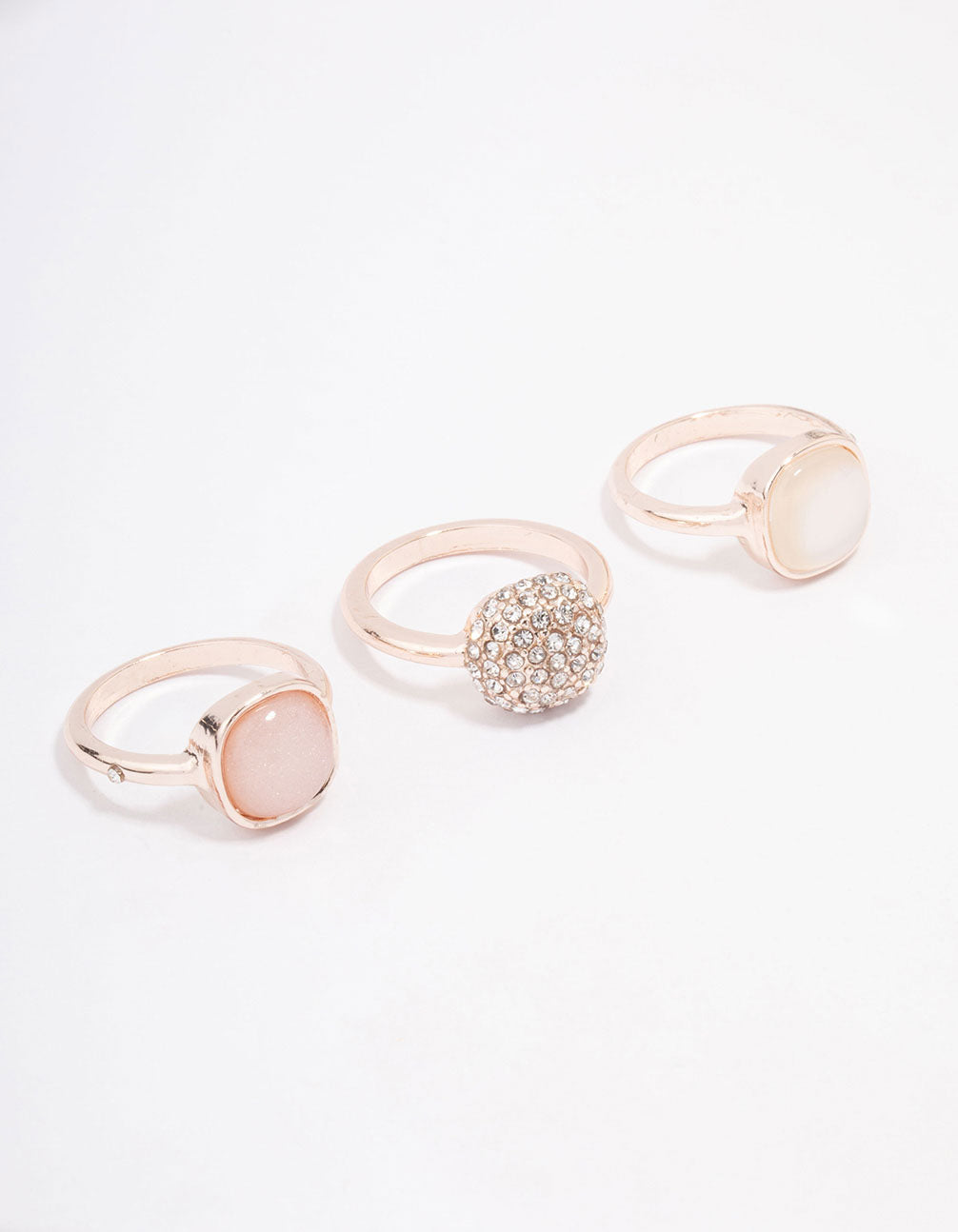 Create your dream stack with this trio of rose gold rings. This ring set includes three individual cocktail rings, each adorned with a round stone in the centre for a unique finish.