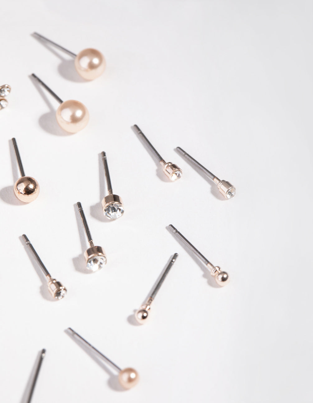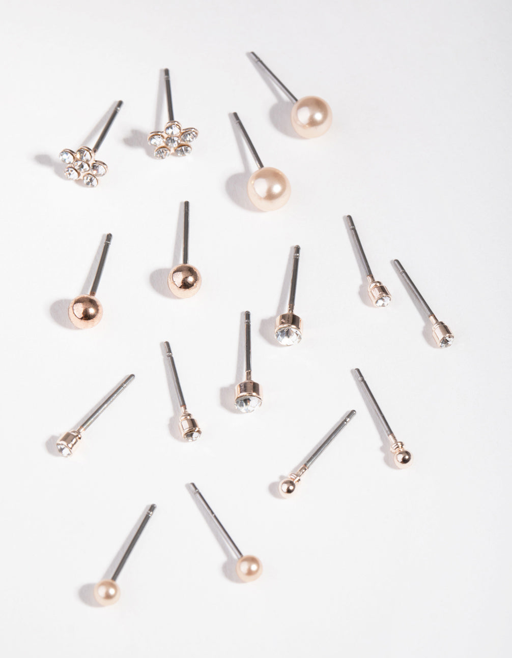 Rose Gold Diamante Flower & Pearl 8-Pack Earring