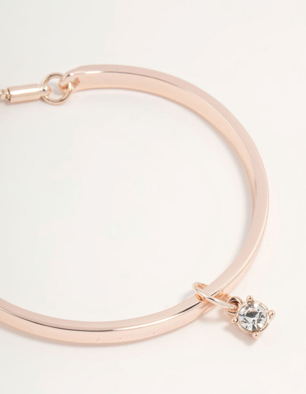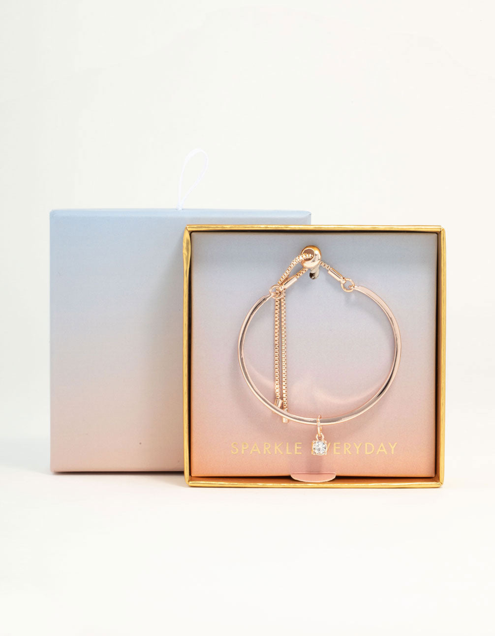 Surprise your loved one with a beautiful, minimalistic rose gold bracelet. This bracelet features a solitaire diamante crystal and rose gold tones for an elegant, polished look.