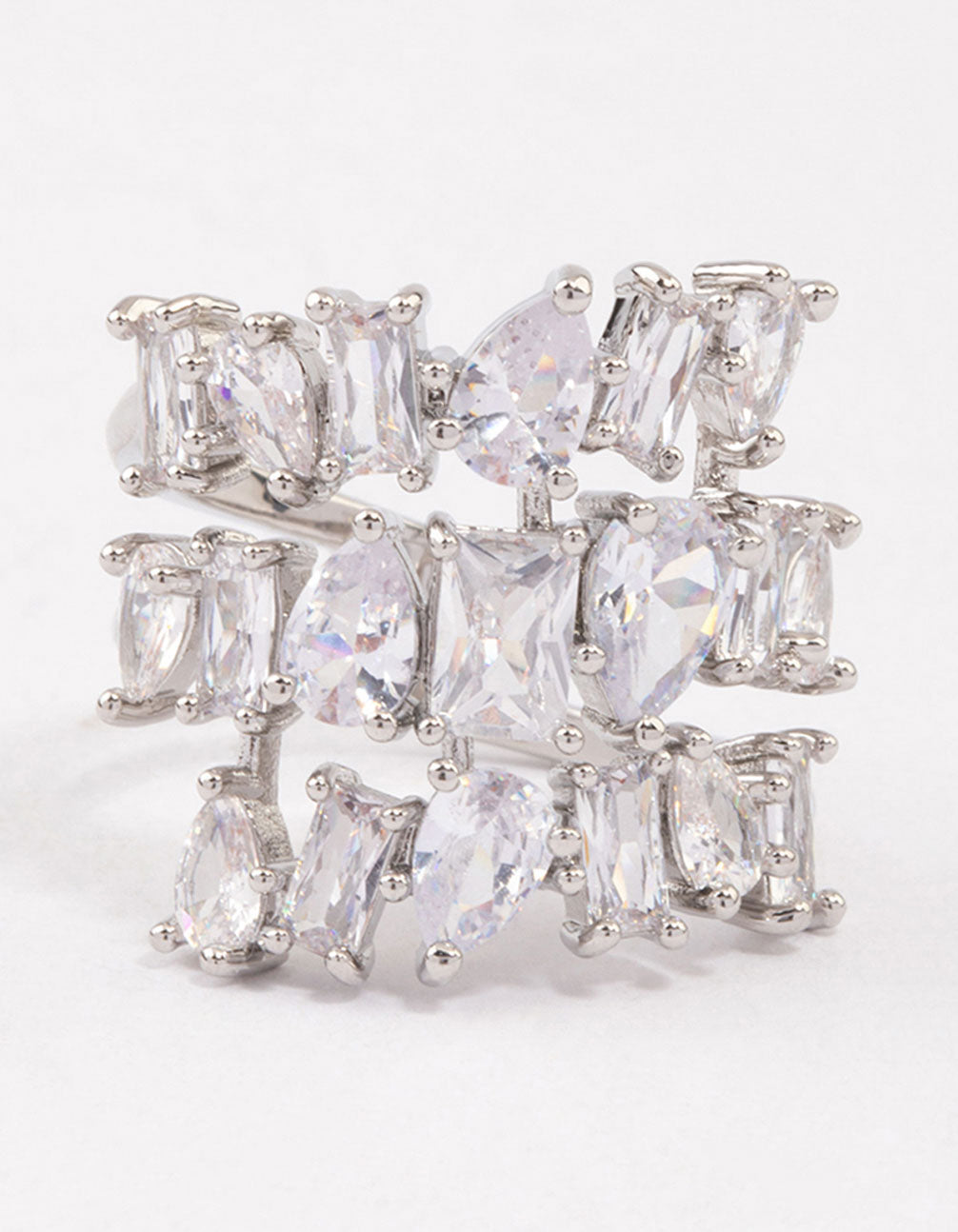 Silver Multi Stone Cubic Zirconia Wrapped Ring