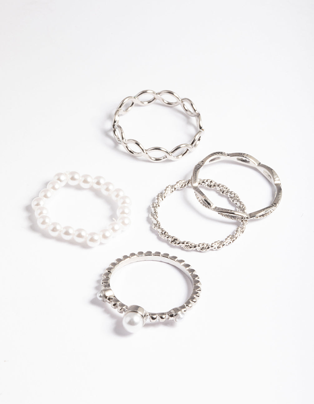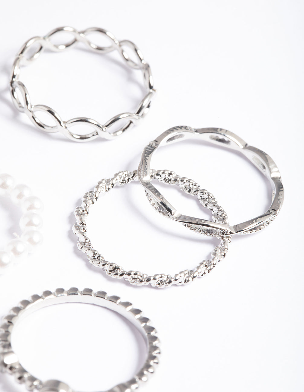 Curate the perfect ring stack with a dainty pack of silver-toned, embellished rings! Pair this set with some pearl, drop earrings for an effortlessly elevated look.