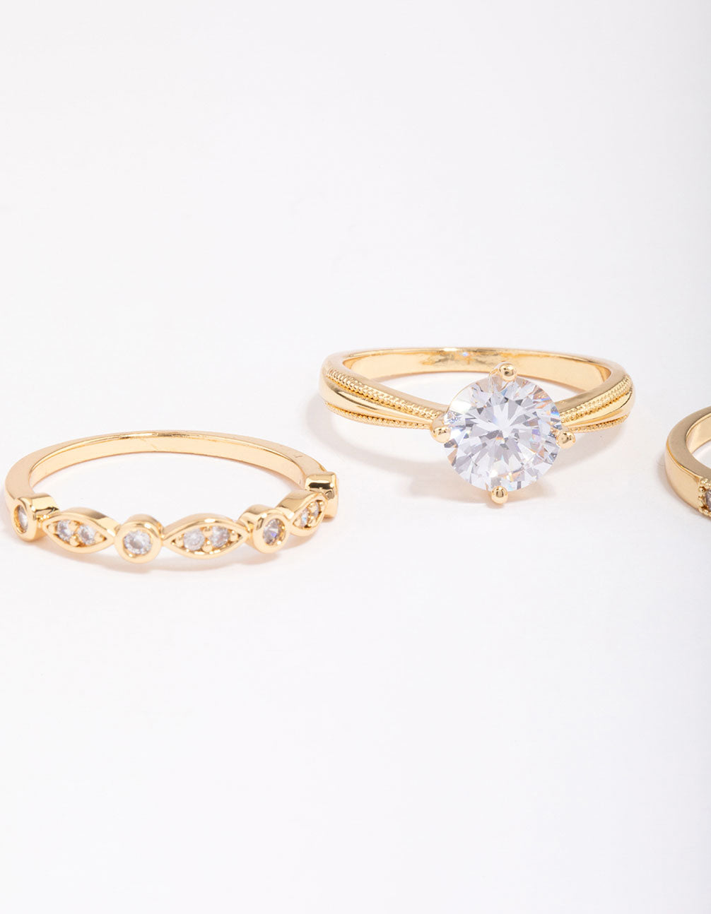 Gold Plated Cubic Zirconia Round Stone Ring Pack Gold Plated Cubic Zirconia Round Stone Ring Pack Gold Plated Cubic Zirconia Round Stone Ring Pack