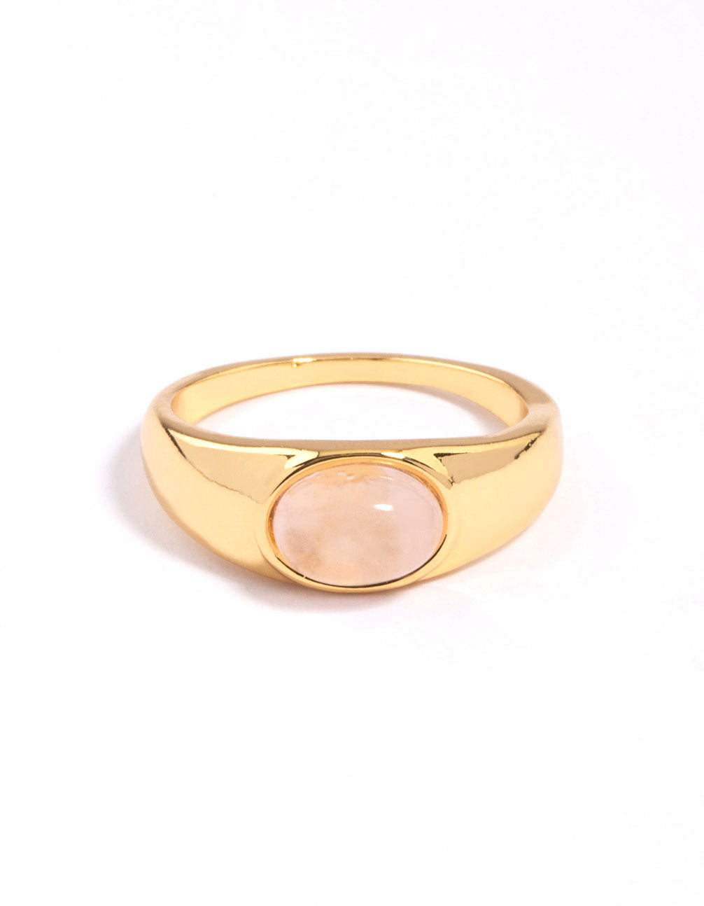 • This gold plated ring features a timeless, oval signet design that can be styled for years to come.