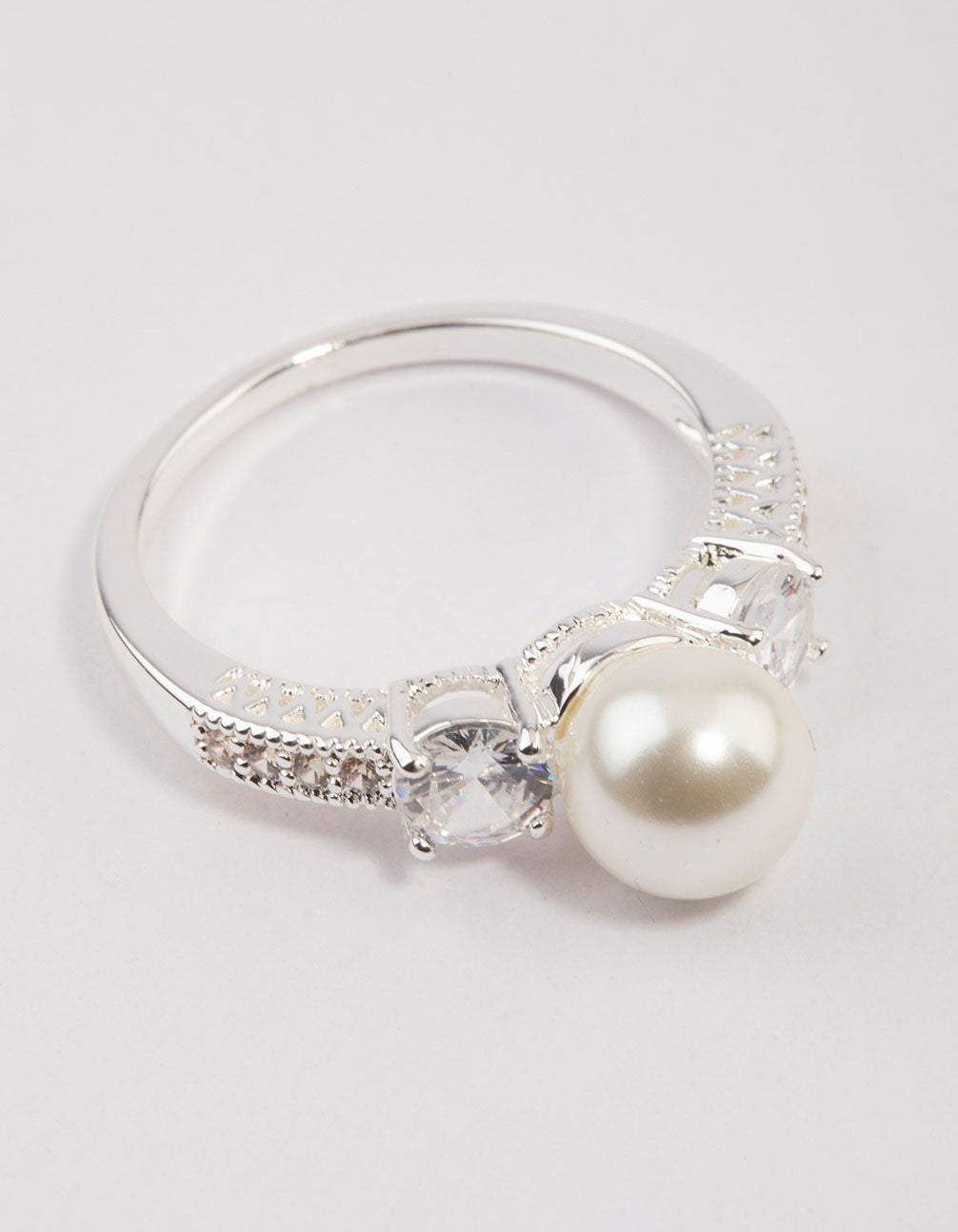 - This enchanting ring features a stunning, silver-plated setting and is embellished with a large pearl in the centre for a sophisticated touch.
