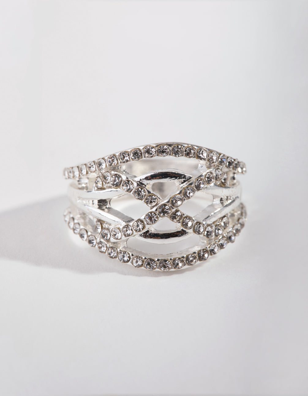 Raise your ring game with this diamante-embellished silver-toned ring. This ring features a unique criss-cross shape on a silver-toned setting. This ring is destined to add an air of opulence to any ensemble!