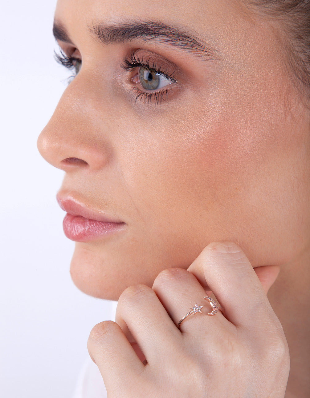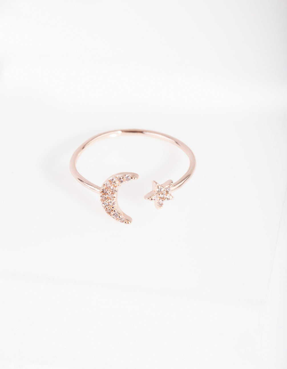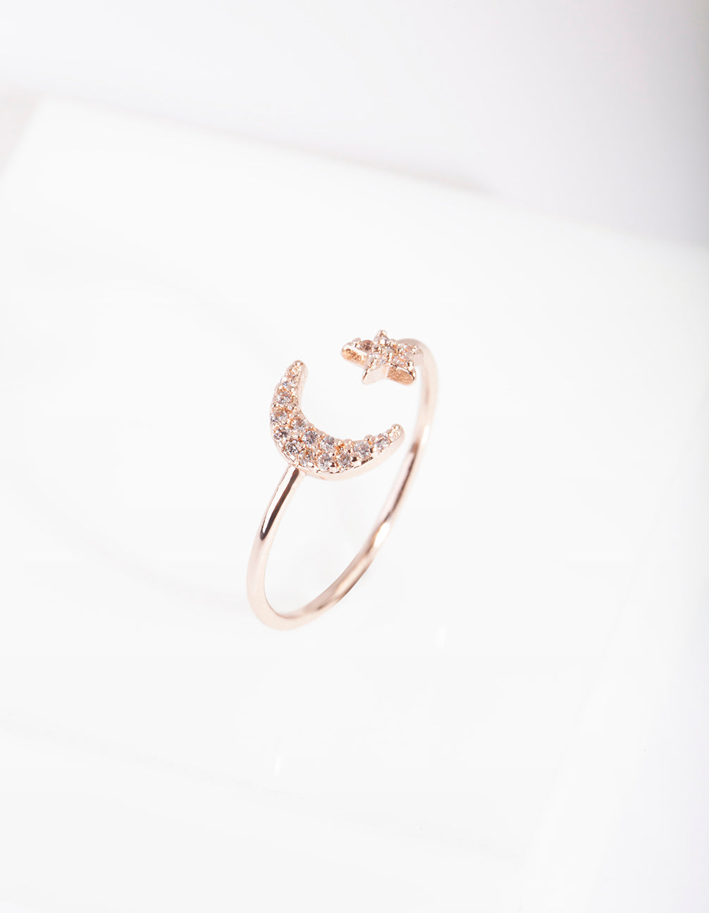 Rose Gold Cubic Zirconia Moon & Star Ring