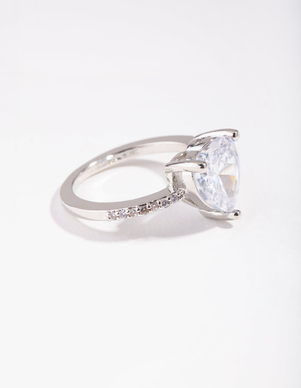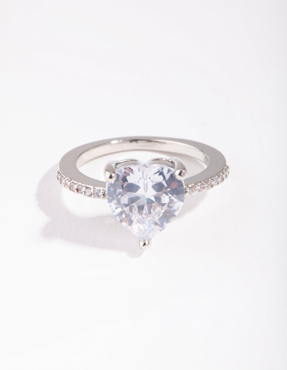 Let your ring stack shine bright with cubic zirconia stones. This silver-toned engagement style ring features a stunning large heart-shaped stone design and is perfect on its own or stacked with others.
