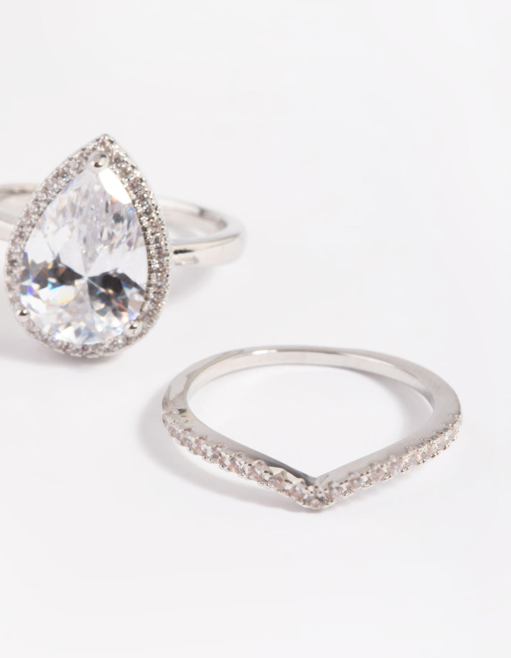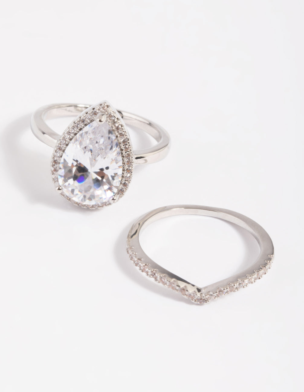 Silver Cubic Zirconia Pear Halo Ring Stack Pack