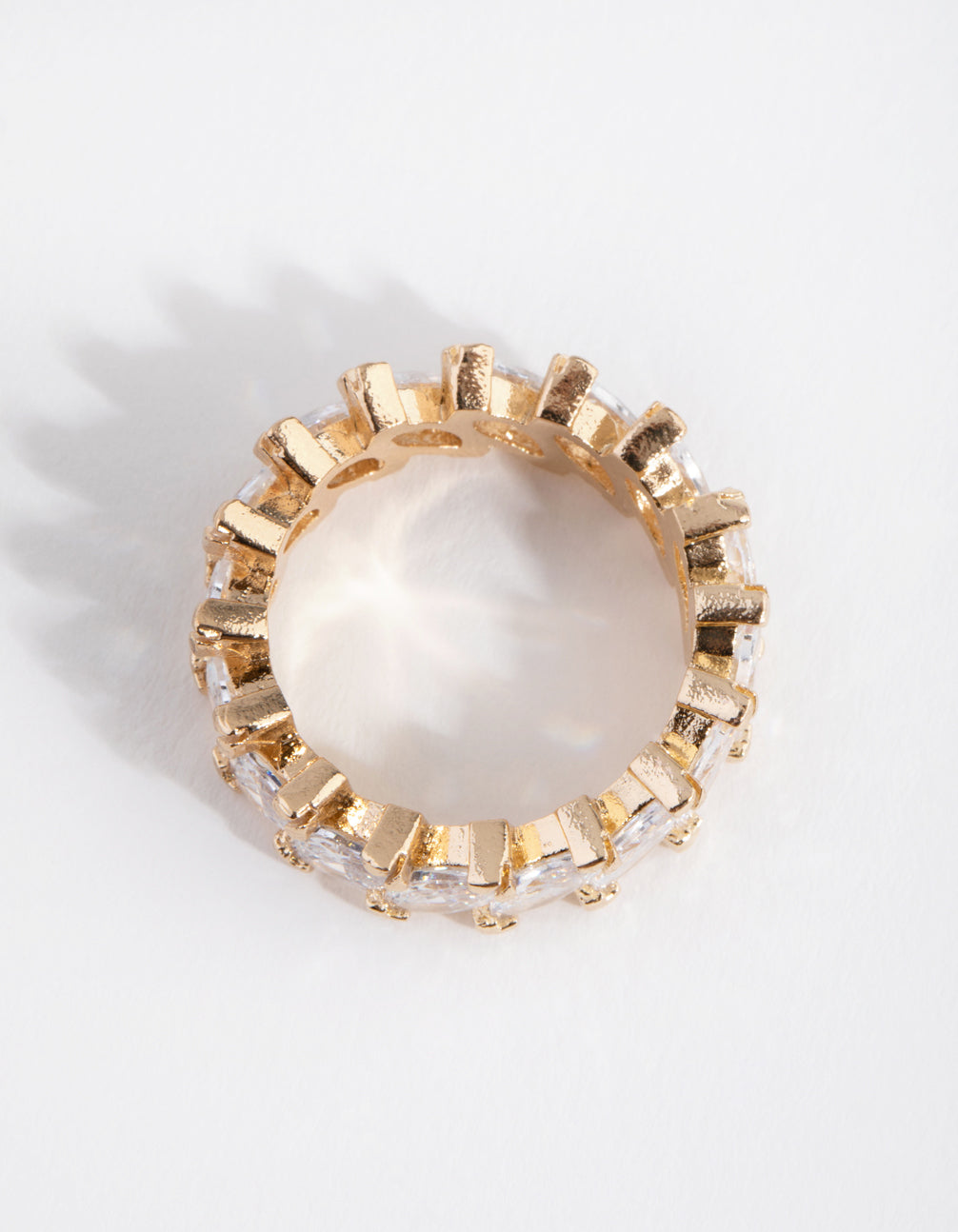 Gold Cubic Zirconia Diagonal Navette Band Ring
