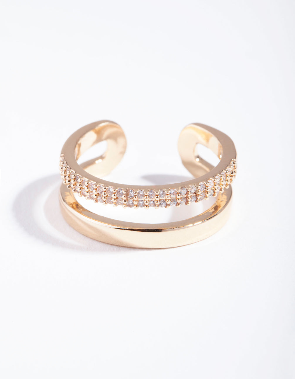 Add some luxury to your look with rings featuring cubic zirconia stones, which sparkle with the clarity and brilliance of a true diamond. This gold-toned ring features a parallel band design, where the top band is beset with cubic zirconia stones. Enjoy a ring with some bling!