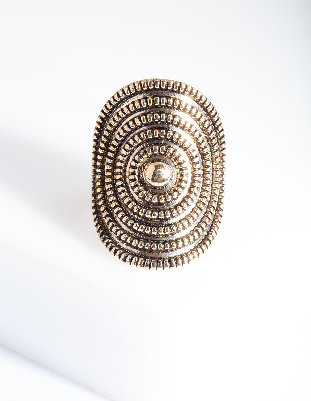Make a statement in a stunning fashion ring. Stack with other styles for extra impact or wear alone for a refined addition to your ensemble. This ring features a textured design in an antique gold tone.