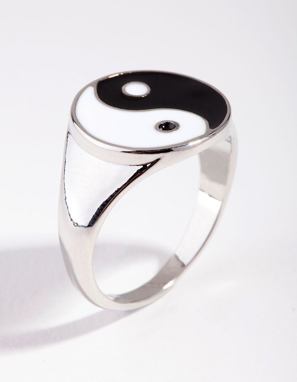 Step into summer with playful rings with major 90s vibes perfect for festivals, summer nights or lounging poolside. This silver-toned ring features a yin yang symbol. Stack it with other retro rings for a fun and funky look!