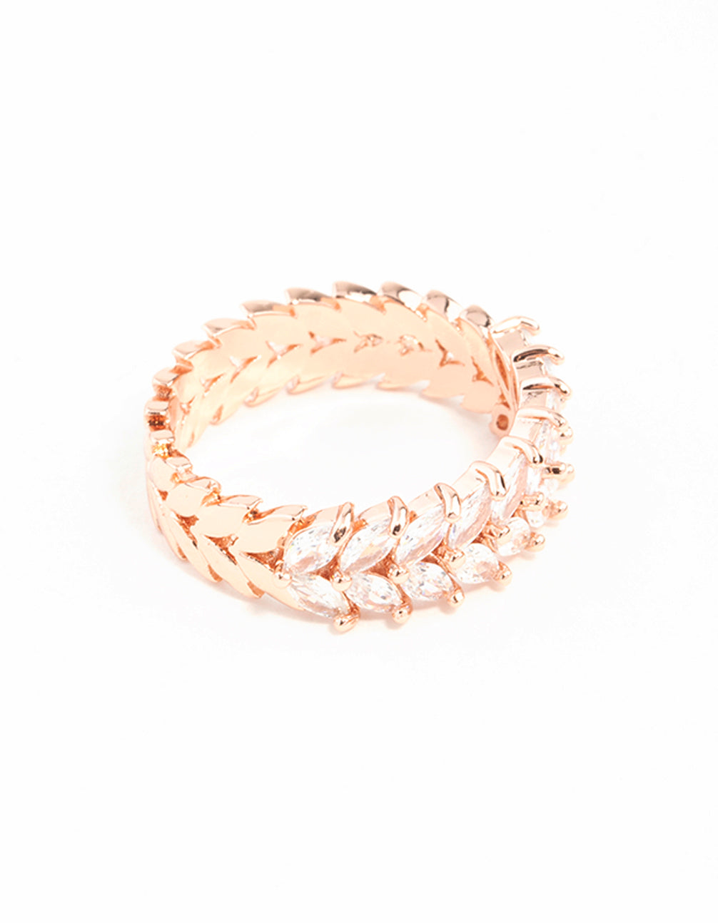 Rose Gold Plated Cubic Zirconia Navette Ring