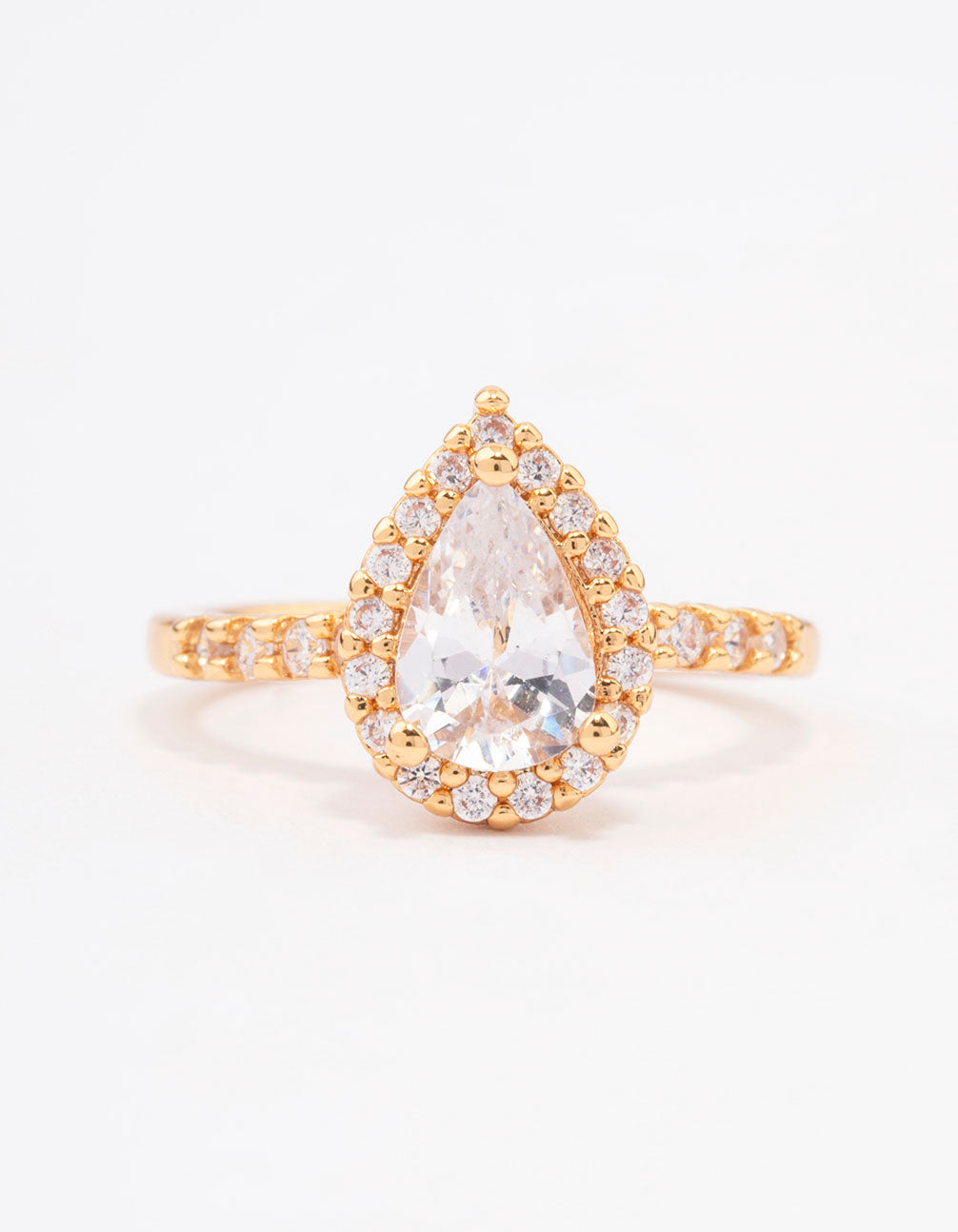 - Style this Gold Plated Classic Pear Cubic Zirconia Engagement Ring for an eye-catching finish to your ring stack.