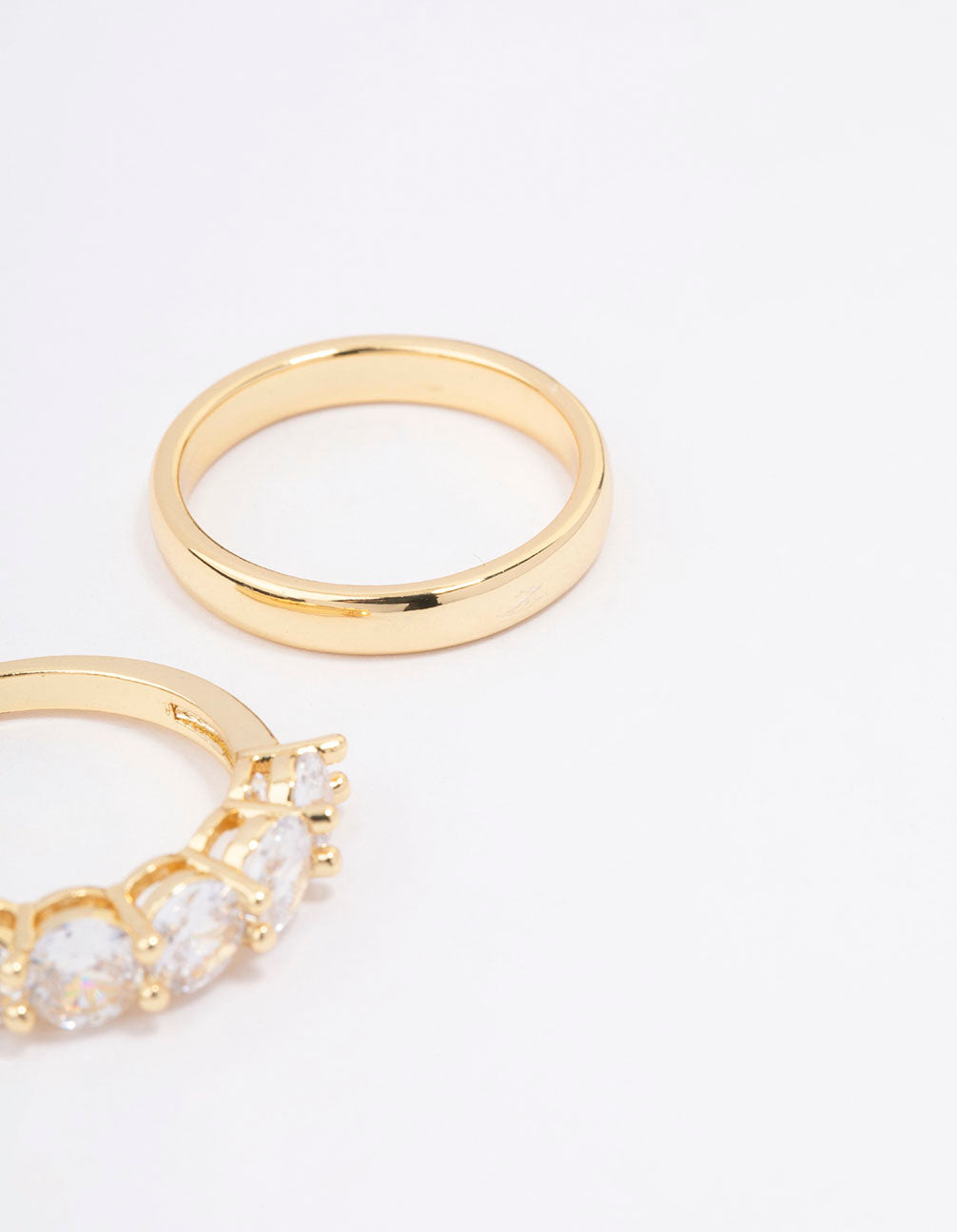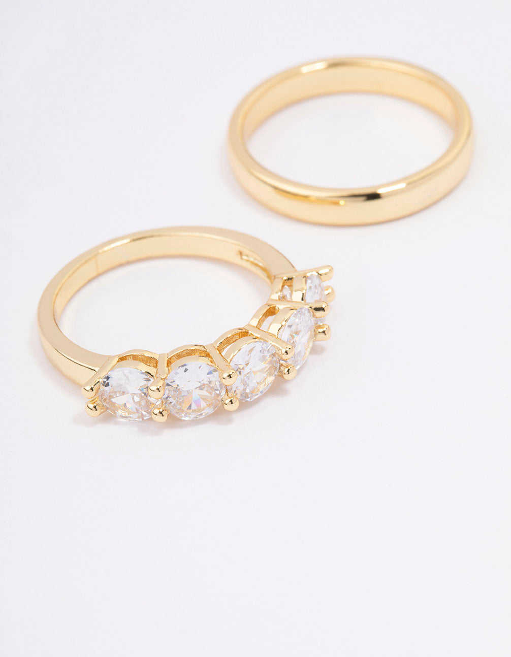 - Style this Gold Plated Round Cubic Zirconia Double Band Ring for an eye-catching finish to your ring stack.