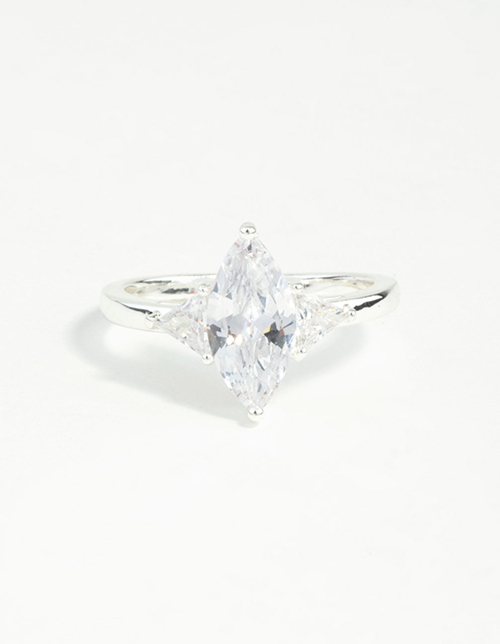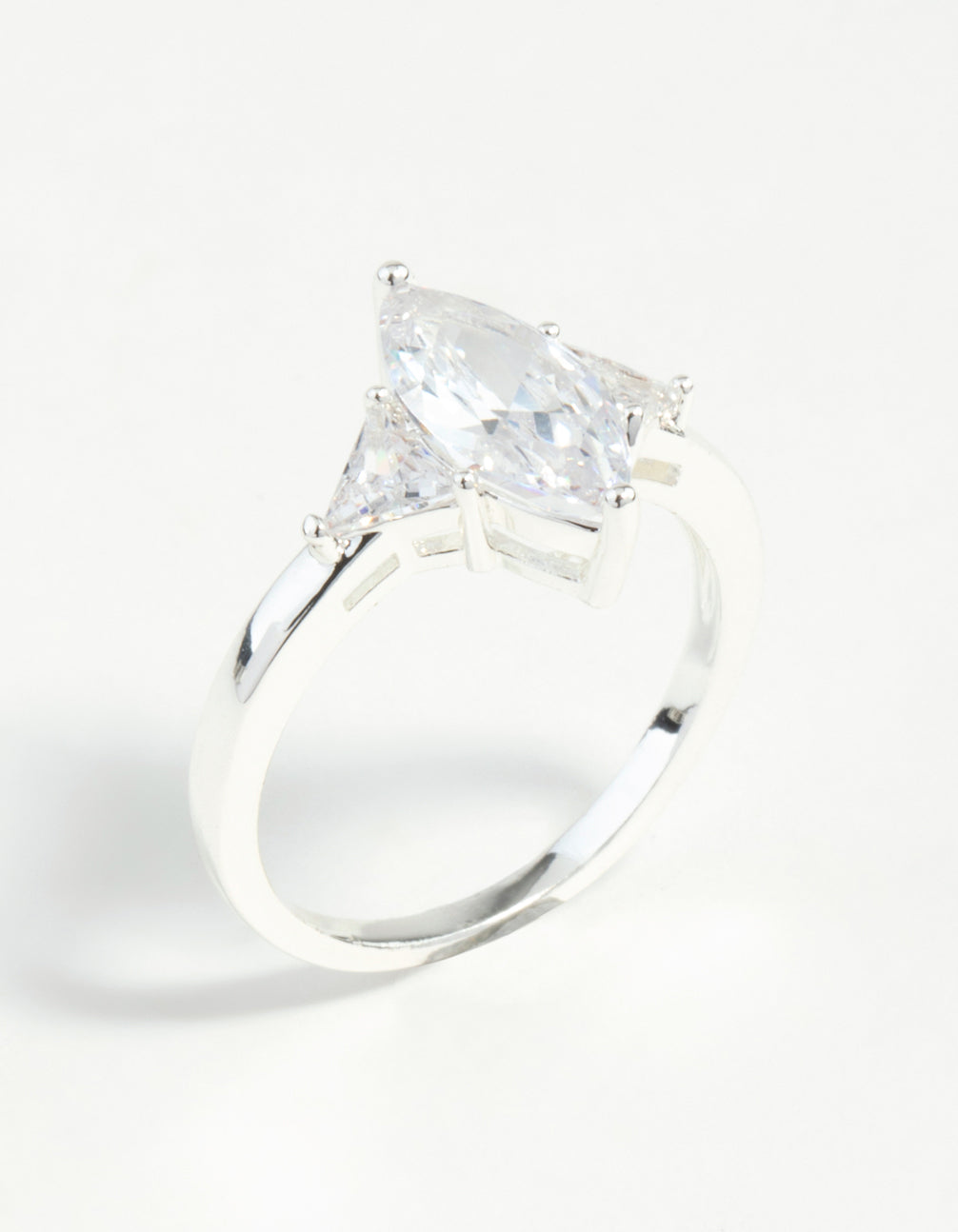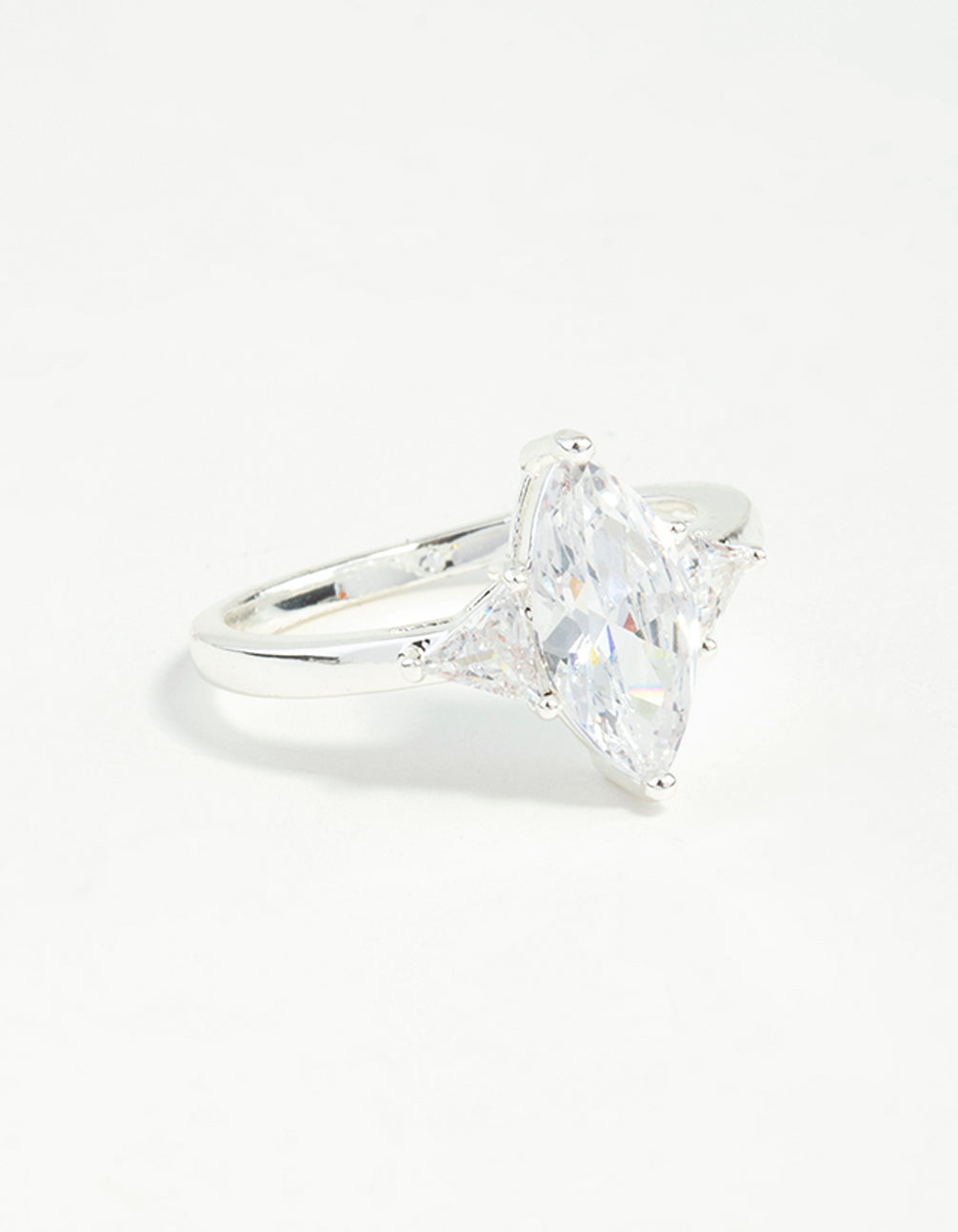 Curate the ultimate stack with our collection of genuine gold and silver plated rings. This precious marquise ring is crafted with real silver plating and encrusted with cubic zirconia crystals for a luxe look.