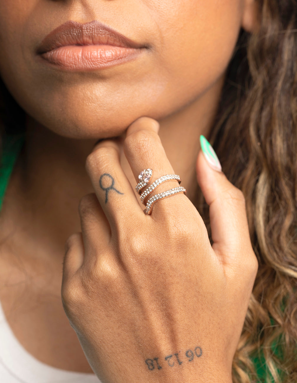Rose Gold Diamante Snake Ring