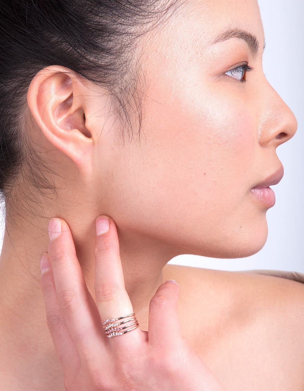 Make a statement in a stunning fashion ring. Stack with other styles for extra impact or wear alone for a refined addition to your ensemble. This ring features a rose gold toned setting with pink ombre diamante embellishments.