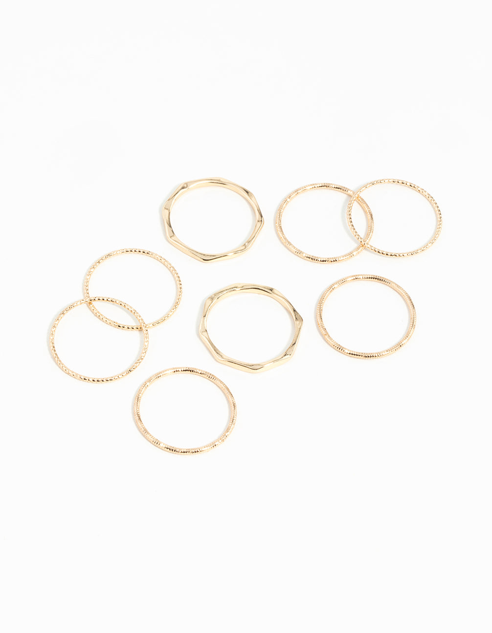 This ring pack comes in a gold-tone with a diamond cut and textured design.