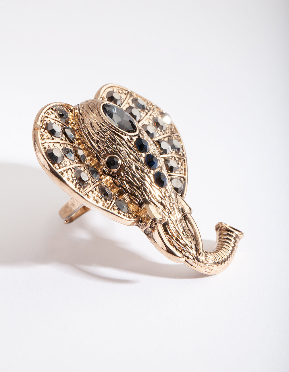 Gold Black Diamante Elephant Ring Gold Black Diamante Elephant Ring