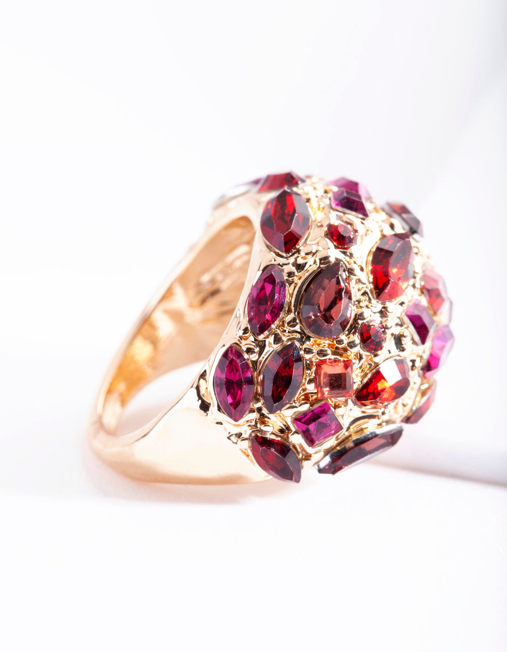 Make a statement in a stunning fashion ring. Stack with other styles for extra impact or wear alone for a refined addition to your ensemble. This ring boasts a textured design covered in pink gems in a gold tone.åÊ