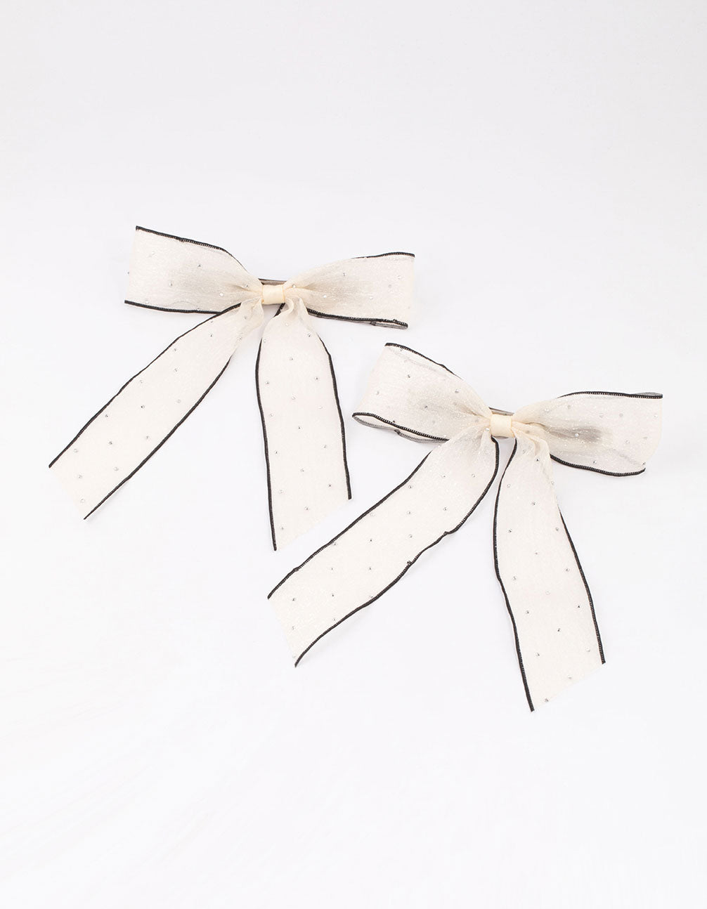 • This set of cream diamante hair bows comes in a pack of two.