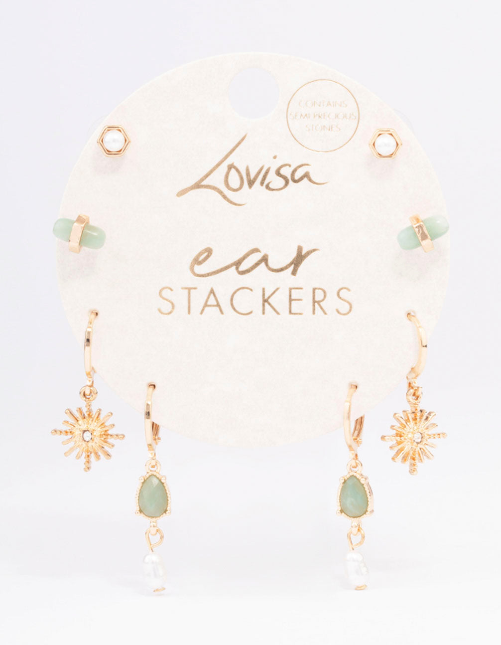 Gold Green Aventurine Celestial & Pearly Earring 4-Pack