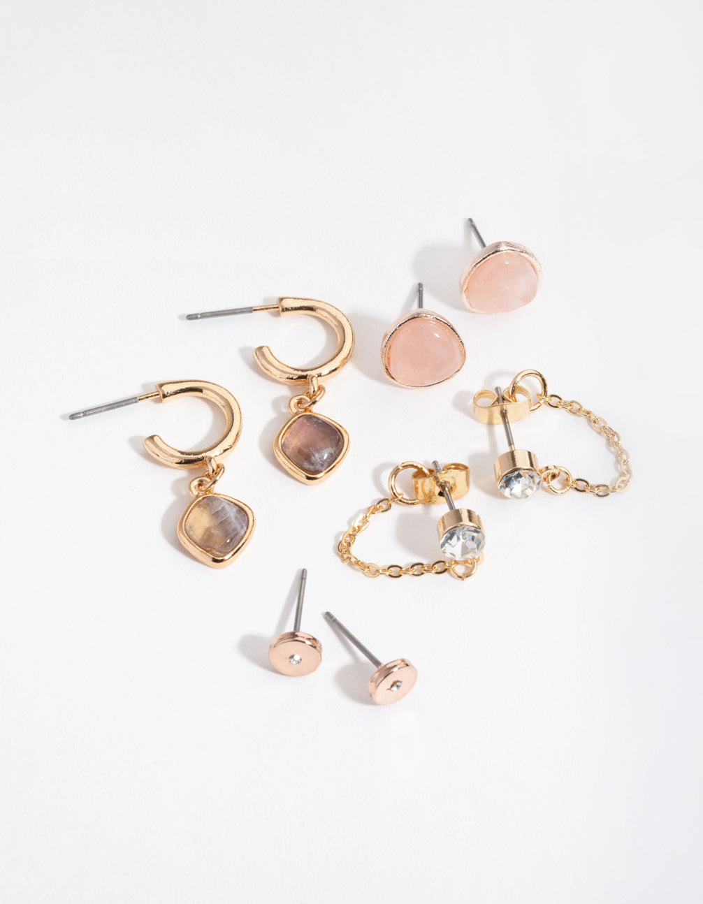 Gold Round Stone Earring Stack Pack