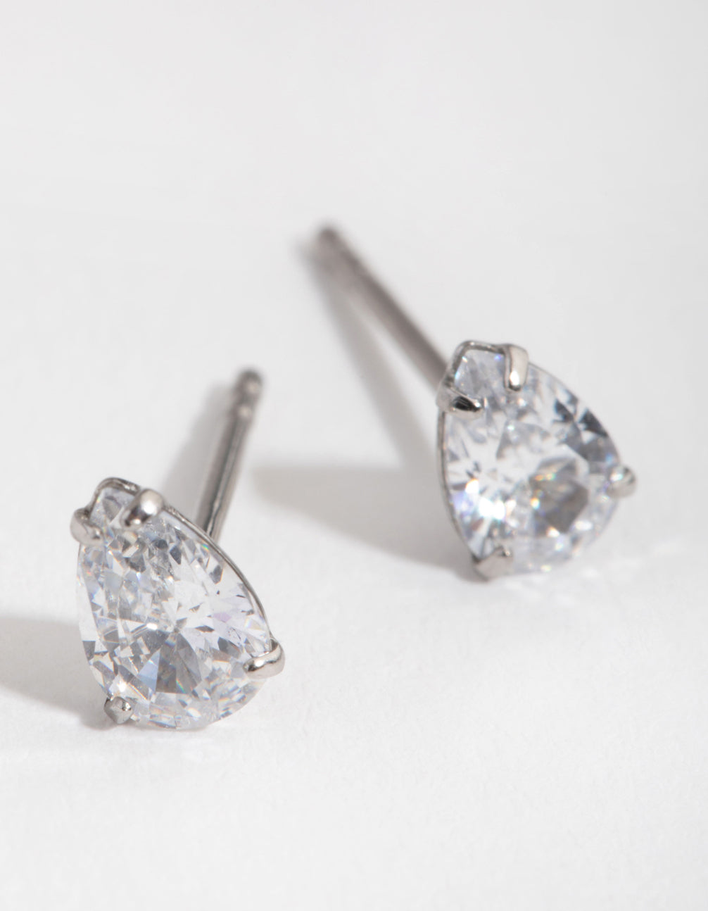 Surgical Steel Cubic Zirconia Pear Stud Earrings