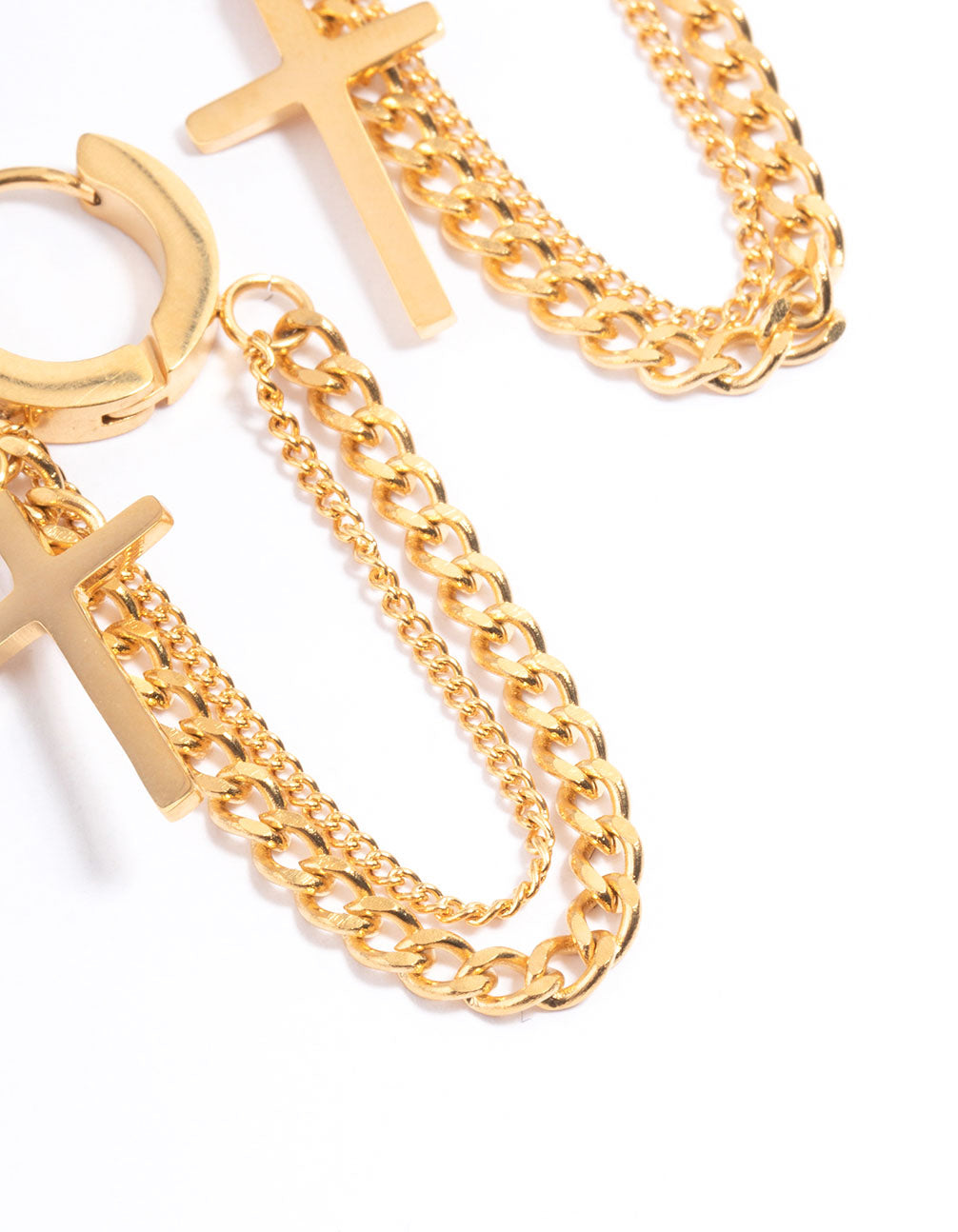 Waterproof Gold Plated Stainless Steel Cross Chain Drop Huggie Earrings Waterproof Gold Plated Stainless Steel Cross Chain Drop Huggie Earrings Waterproof Gold Plated Stainless Steel Cross Chain Drop Huggie Earrings