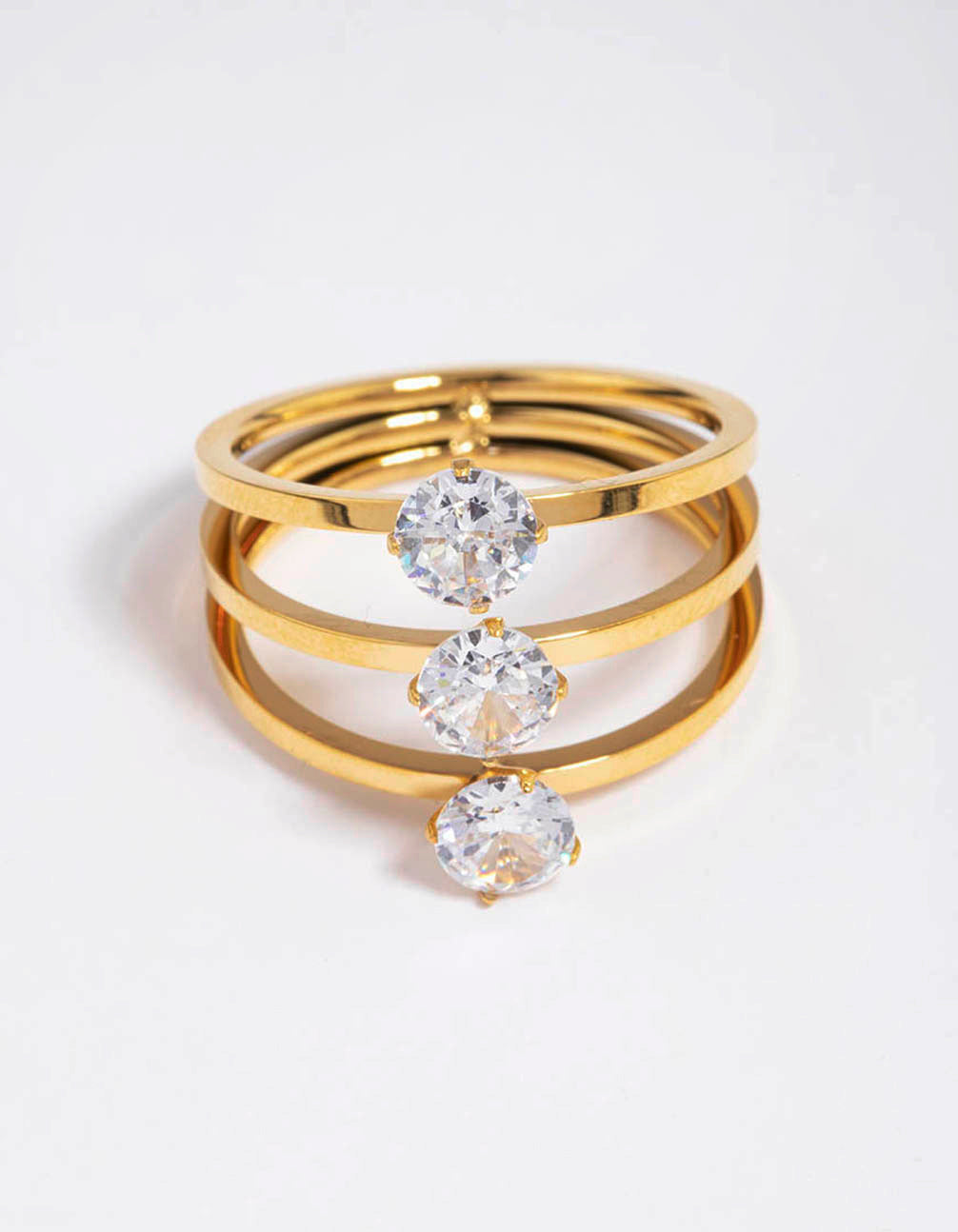 Waterproof Gold Plated Stainless Steel Cubic Zirconia Triple Tier Ring Waterproof Gold Plated Stainless Steel Cubic Zirconia Triple Tier Ring Waterproof Gold Plated Stainless Steel Cubic Zirconia Triple Tier Ring