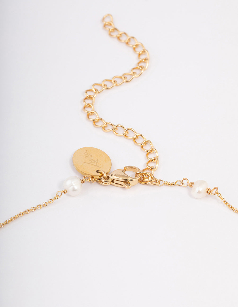 Waterproof Gold Plated Stainless Steel Freshwater Pearl Station Coin Necklace