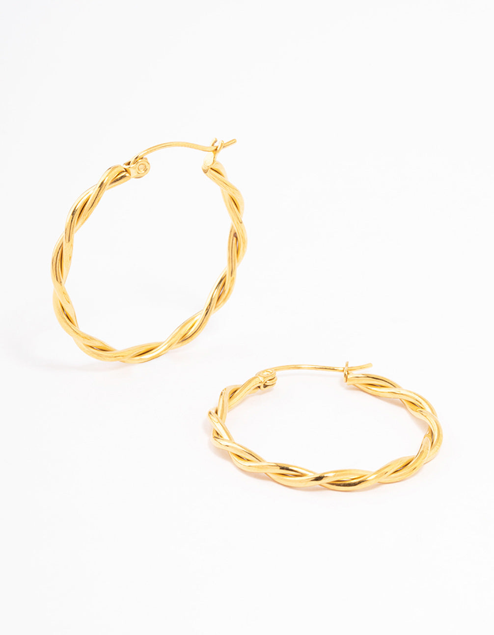 • Waterproof Gold Plated Stainless Steel Medium Thin Twisted Hoop Earrings - link has visual effect only