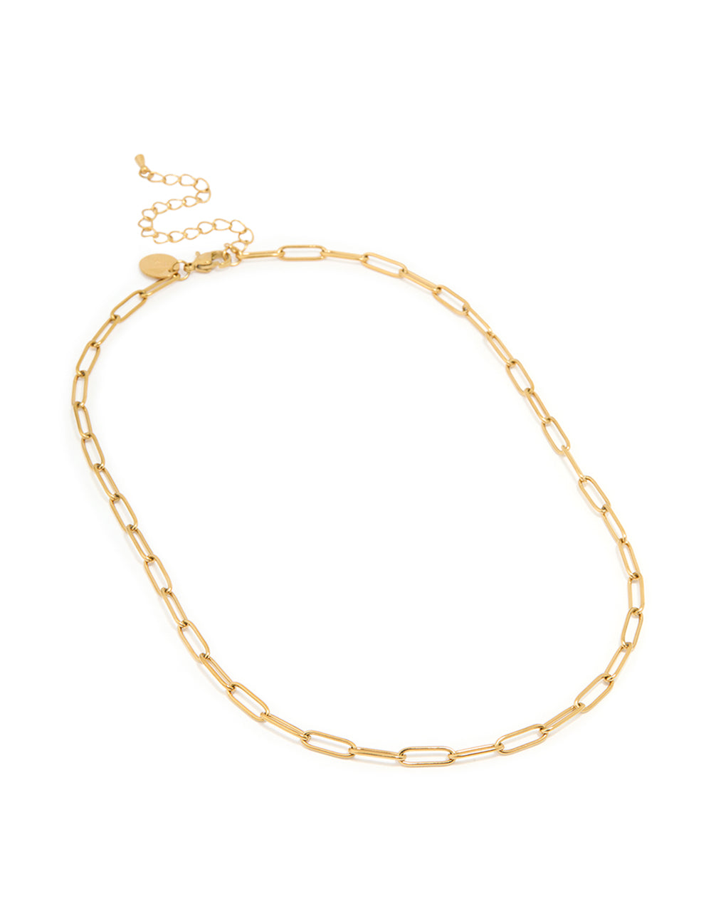 Elevate your style with this Waterproof Gold Plated Stainless Steel Open Oval Link Necklace—your new go-to accessory for any adventure! Featuring bold open oval links and a sleek gold-plated finish, this necklace is as durable as it is stylish. Crafted from stainless steel, it's waterproof and perfect for everything from beach days to brunch dates. Dress it up with a flowy dress for a chic vibe, or layer it with other necklaces for a stylish, everyday look. Whether you're heading to the office or exploring the outdoors, this versatile piece adds a touch of elegance and practicality to any outfit. Adventure-proof jewellery has never looked so good!