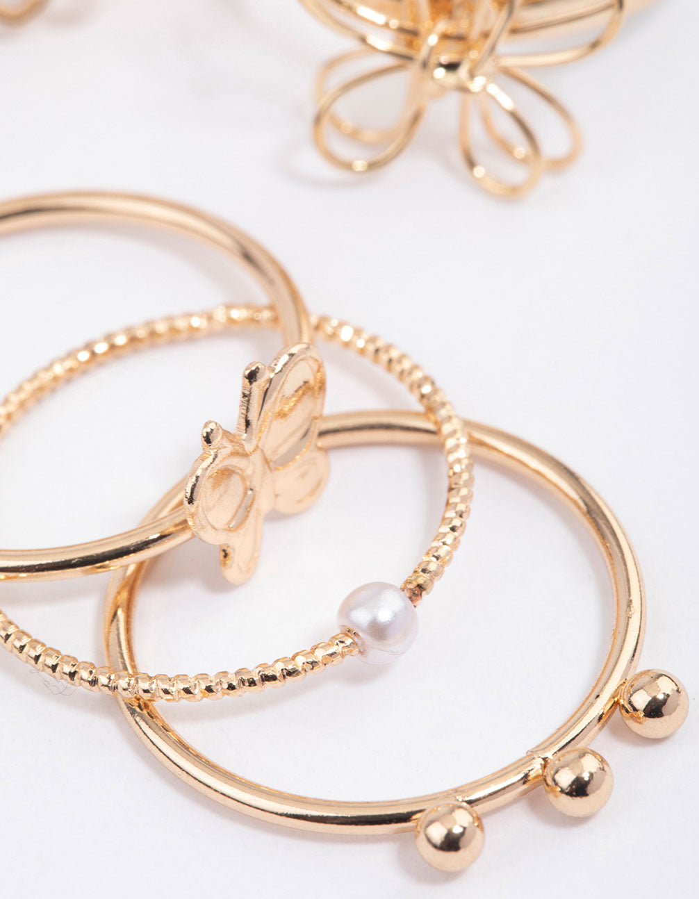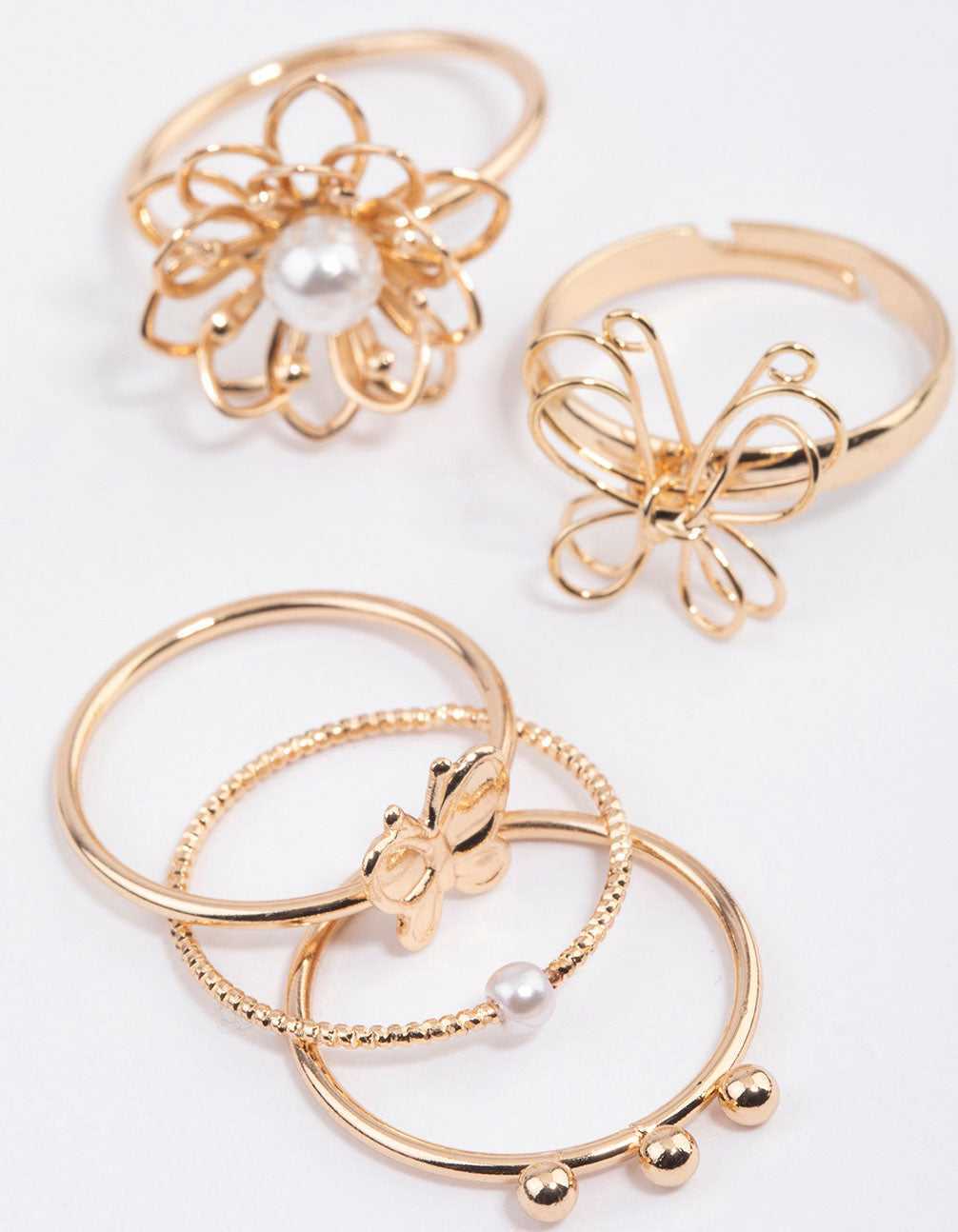 Gold Wire Flower & Butterfly Ring Pack