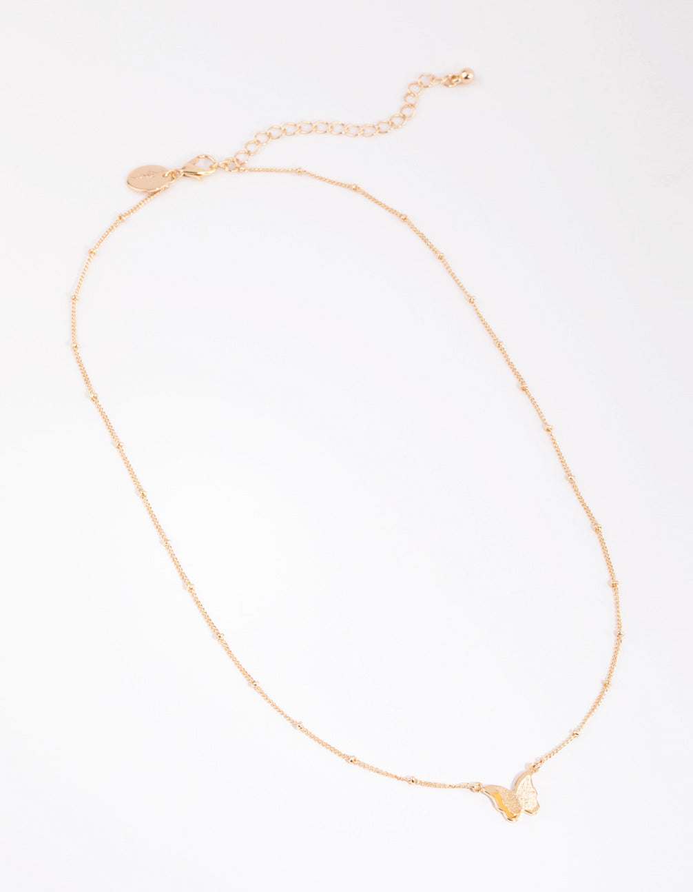 Add a flutter of charm to your look with this Gold Ball & Chain Butterfly Necklace! This stunning piece combines playful butterfly details with a chic ball and chain design, making it the perfect go-to for any jewellery lover. Crafted with gold plating, this necklace adds a touch of elegance to everyday outfits or special occasions. Pair it with a flowy dress for a dreamy vibe or layer it with other necklaces for an on-trend stacked look. Whether you're heading to brunch, a party, or just want to elevate your casual style, this necklace is a versatile accessory that's always in fashion. A must-have for anyone who loves delicate, feminine jewellery with a modern twist!