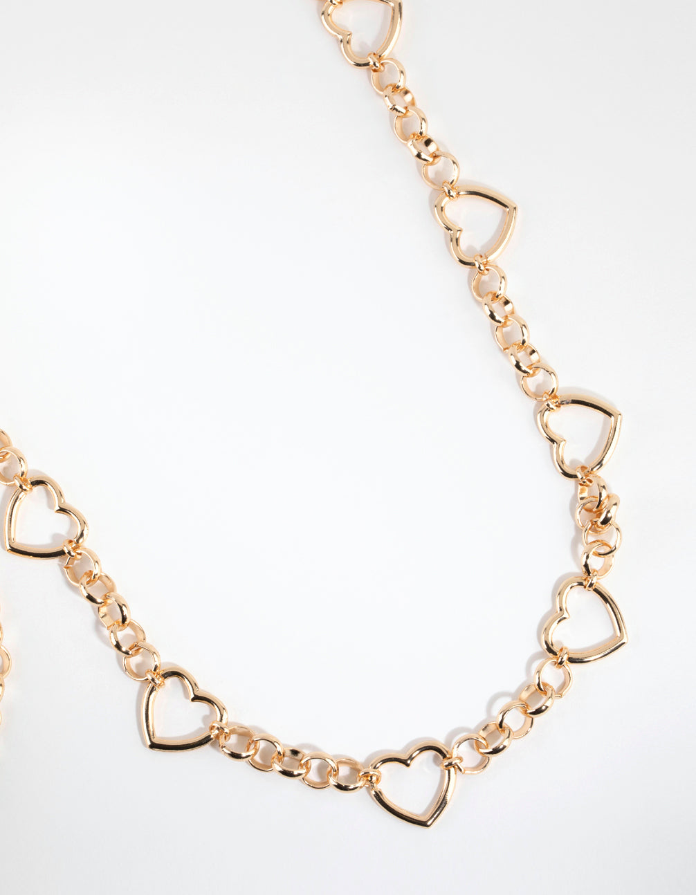 Get ahead of the trends with this chic metallic belt! It's gold toned and features a series of heart-shaped charms. Drape it over dresses, skirts, jeans or shorts and transform your outfit into something new!